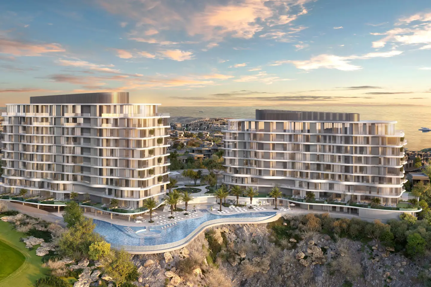 The Great Escape at AIDA introduces a refined residential concept set along Oman’s spectacular Muscat coastline. Positioned on a dramatic cliff edge, the development captures uninterrupted views of the Arabian Sea and a championship golf course. As a result, residents enjoy a rare combination of elevation, privacy, and scenery. Moreover, the natural surroundings create an atmosphere of calm, while the strategic location ensures convenient access to Muscat’s key lifestyle destinations.