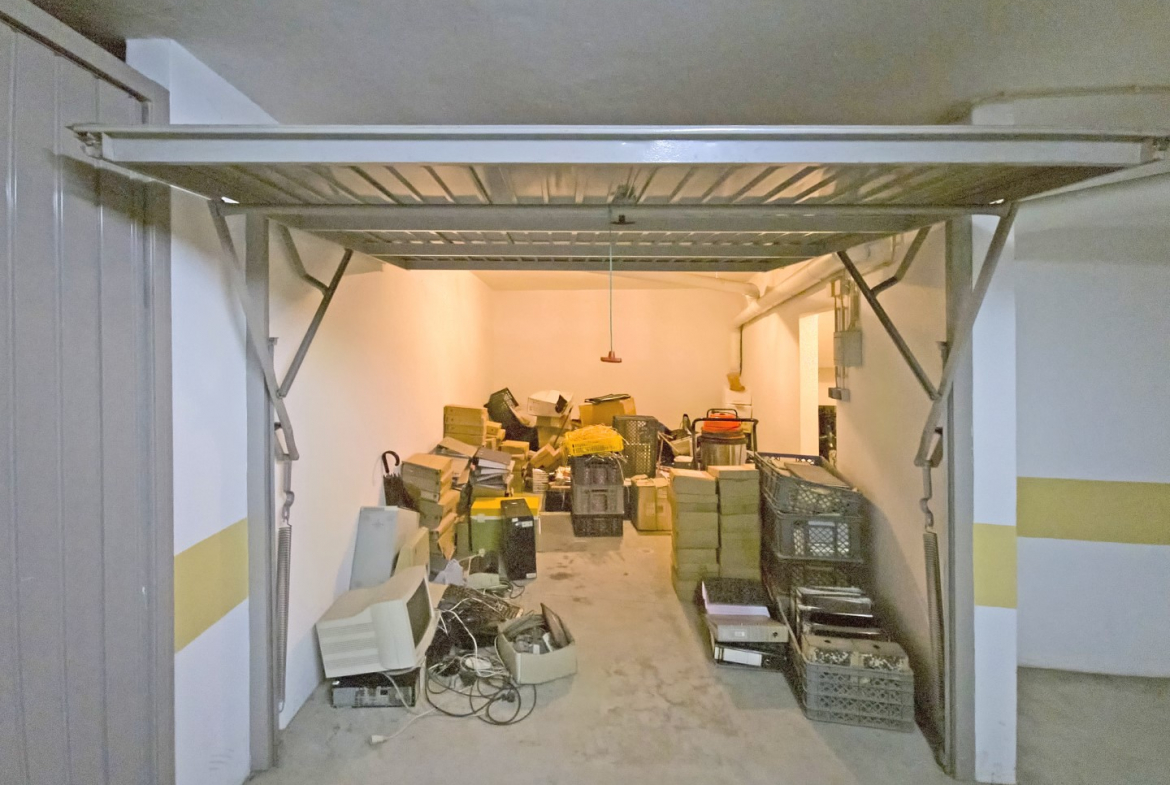 The apartment includes central heating powered by natural gas and a fully equipped kitchen. In addition, a private closed garage provides convenience and secure parking.