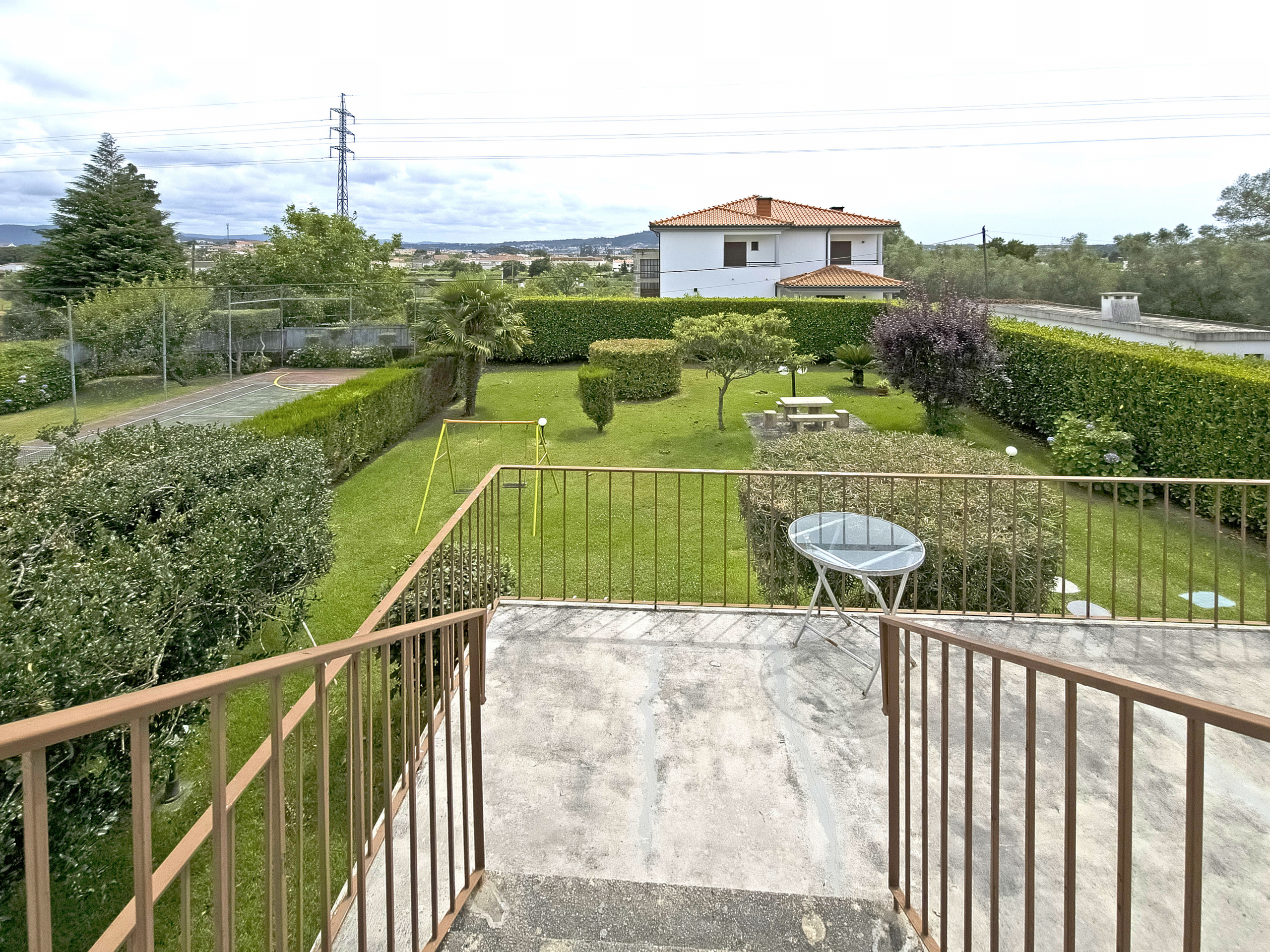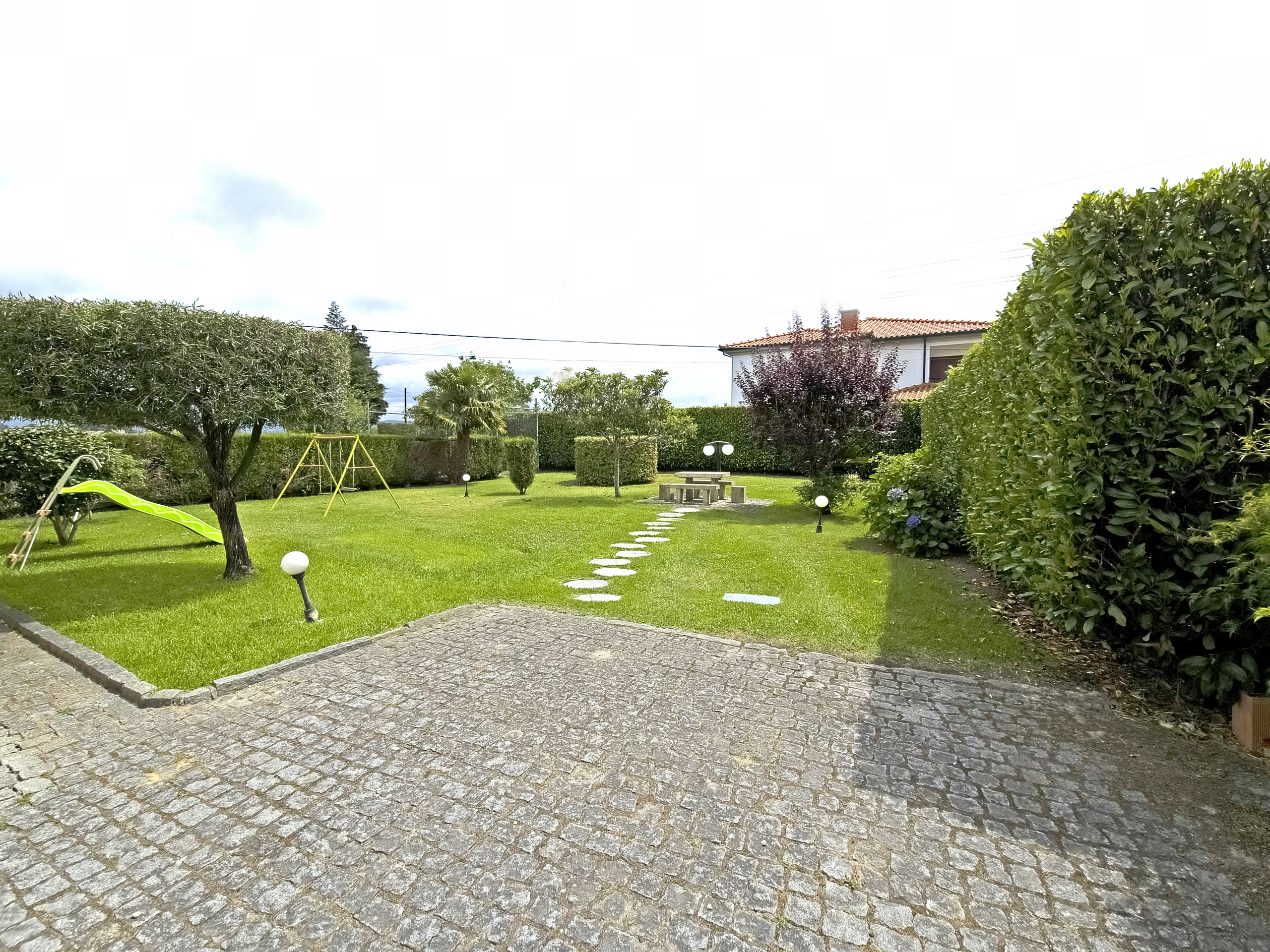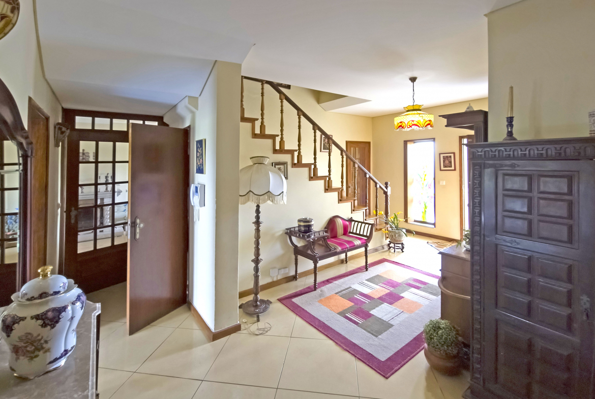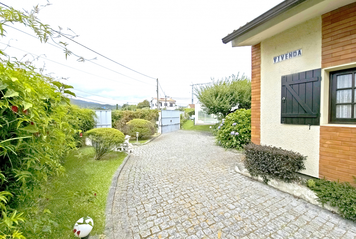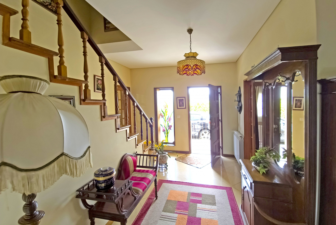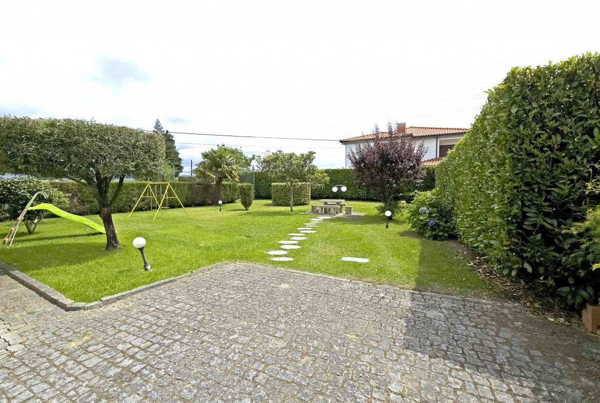 Between the gentle murmur of the Atlantic Ocean and the serenity of the Lima estuary stands this splendid property. Built in the 1980s, the villa is surrounded by an elegant Italian-inspired garden spanning approximately 1,100 m². As a result, the setting blends harmony, privacy, and refinement in a truly distinctive environment.