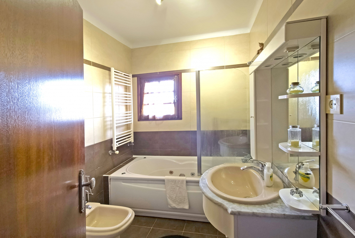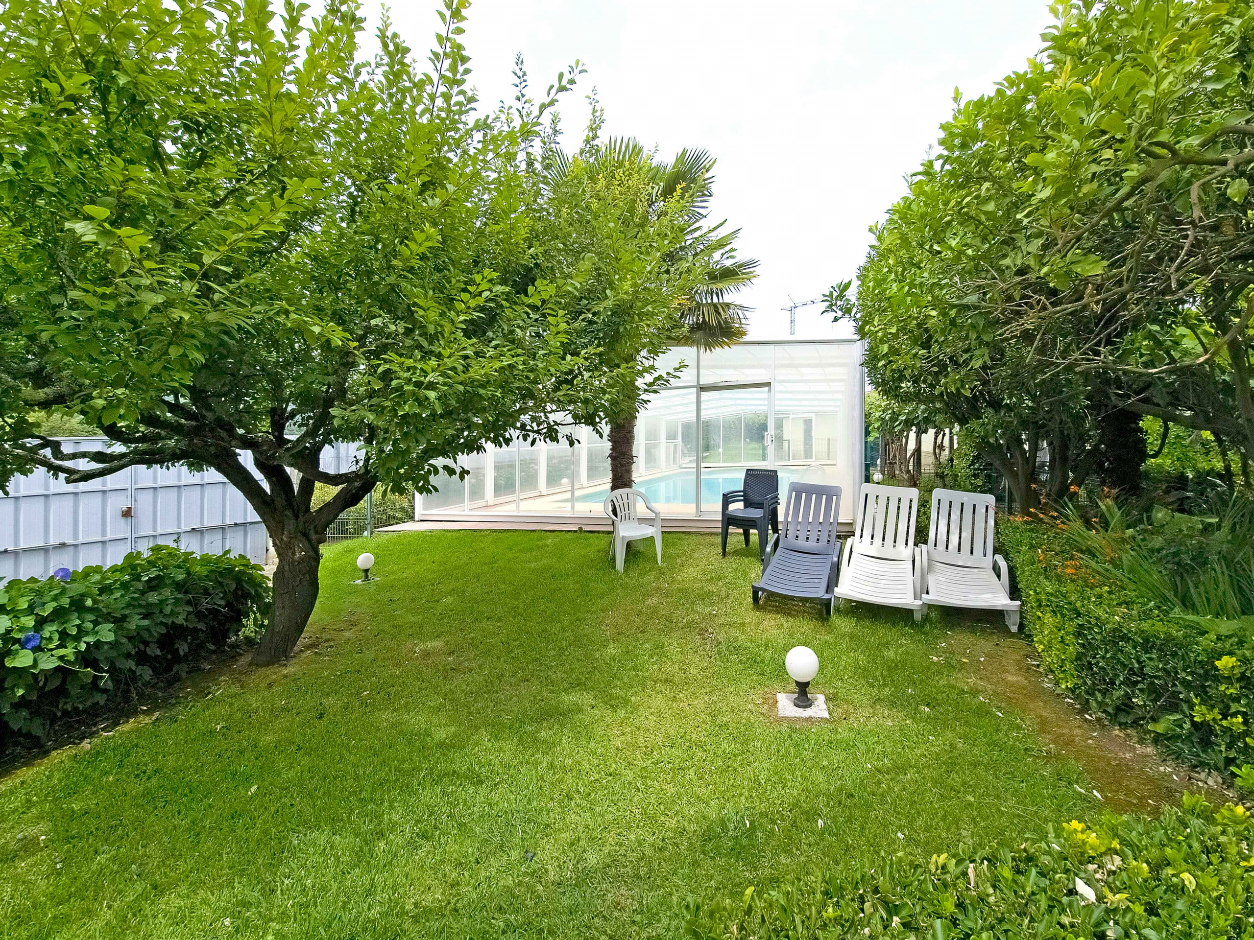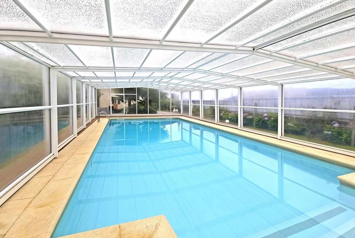 The outdoor areas have been carefully designed to provide year-round enjoyment. A covered and heated swimming pool allows for use in every season. In addition, an automatic protective cover and a discreet alarm system enhance safety and peace of mind.