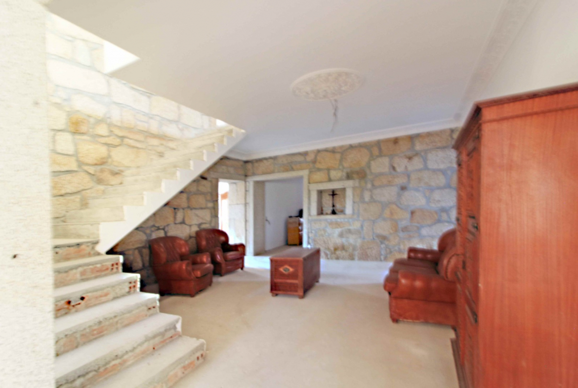 Several annexes complement the main residence, enhancing both functionality and development possibilities. Notably, the estate includes an incomplete private chapel, a rare and distinctive feature. Therefore, the property offers extraordinary character and potential for unique residential or commercial concepts.