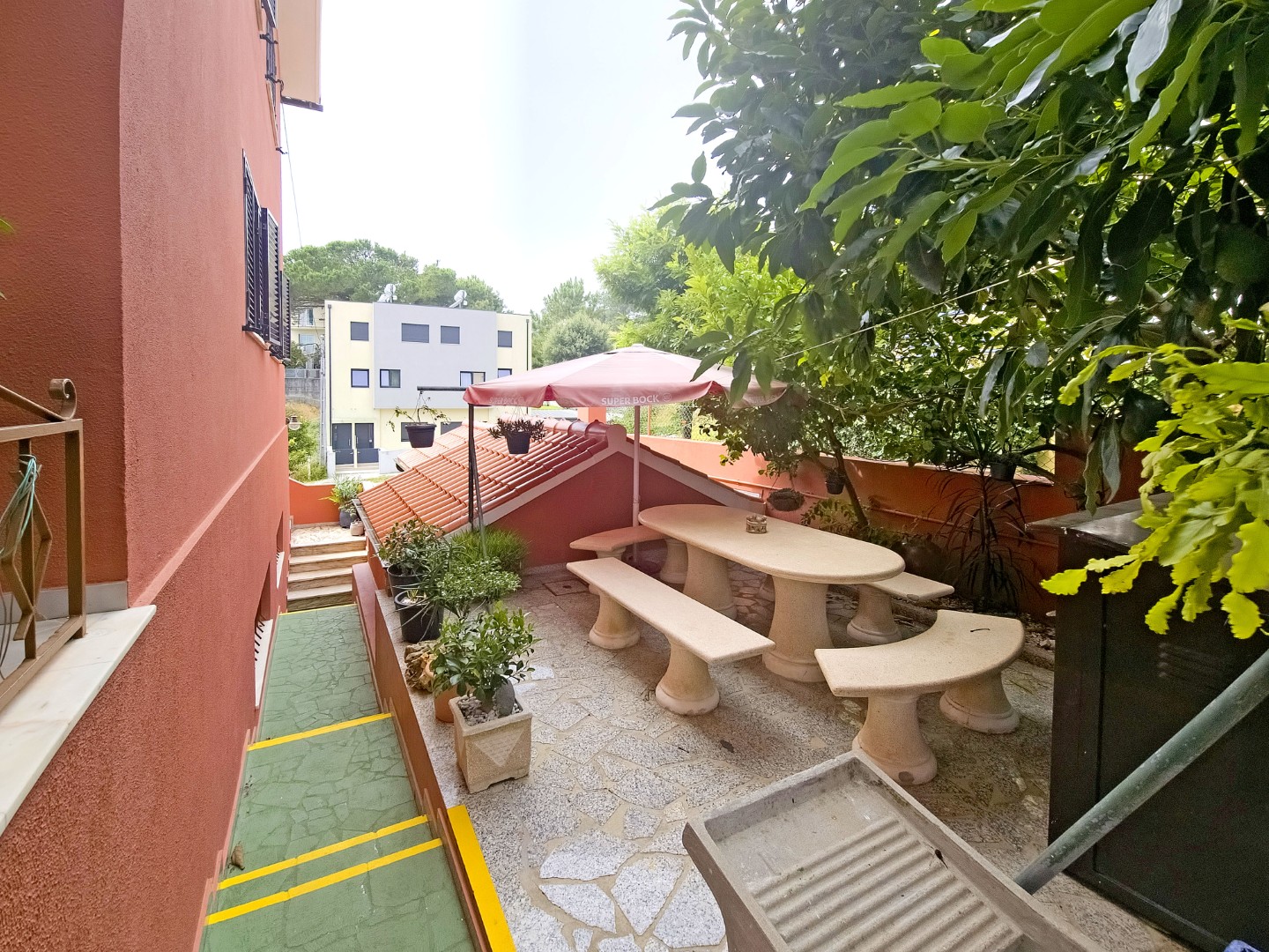 Outside, the property features a beautiful garden and a charming porch area, creating a pleasant environment to relax and enjoy outdoor moments. Altogether, this villa offers space, practicality, and comfort in a peaceful location close to the city.