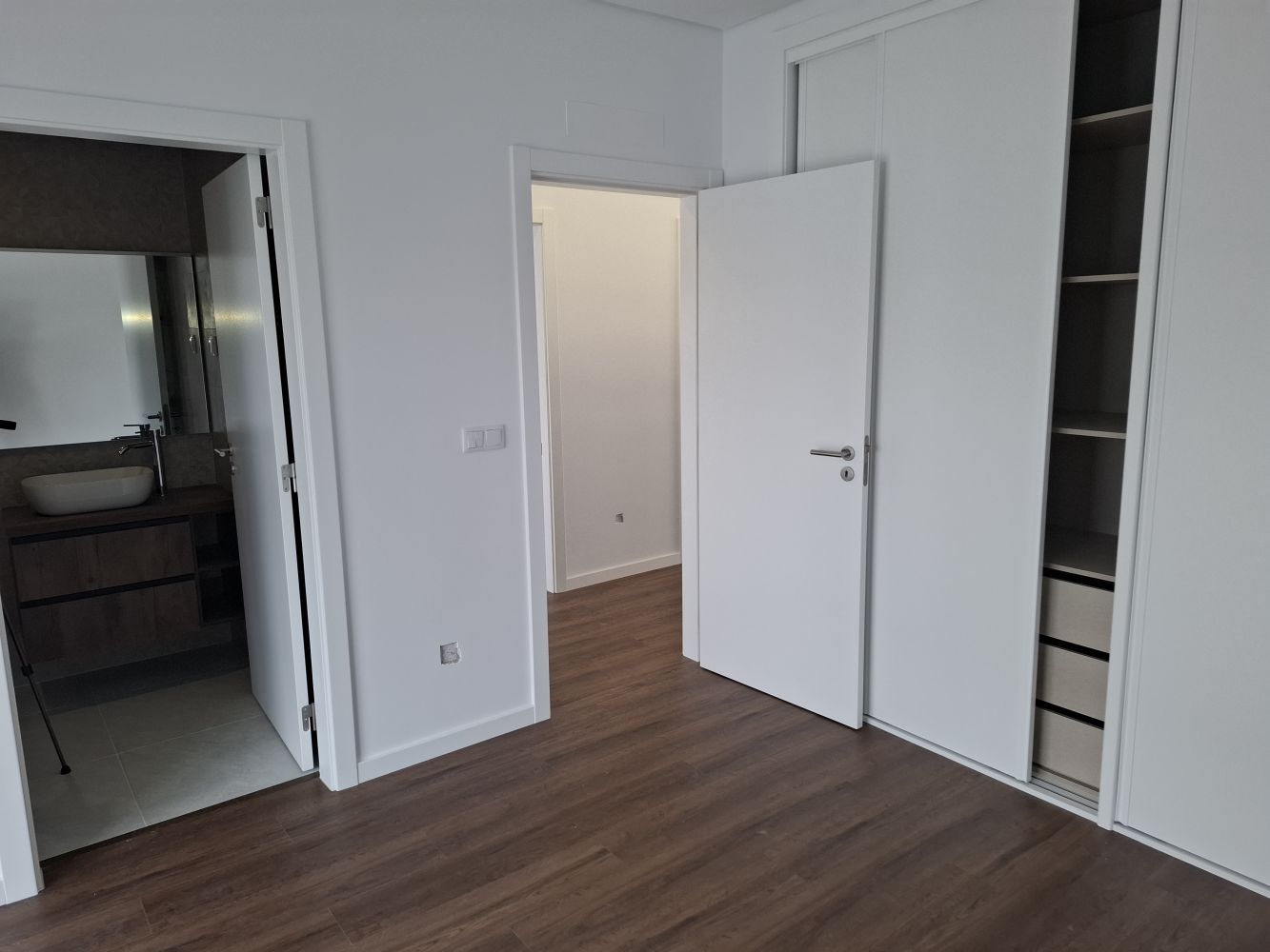 The villa includes several well-sized bedrooms designed for comfort and privacy. One suite of 12.80 m² includes built-in wardrobes and a 7 m² private bathroom, with direct access to the outdoor area.