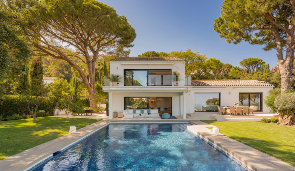 Recently modernised, the villa presents bright, open interiors designed to maximise natural light and views. Expansive glazing seamlessly connects indoor and outdoor living areas, thereby enhancing the sense of space and flow. In addition, the carefully selected neutral palette creates a calm, timeless aesthetic. Mature Corsican pines surround the residence, not only ensuring privacy but also contributing natural beauty and shade throughout the year.