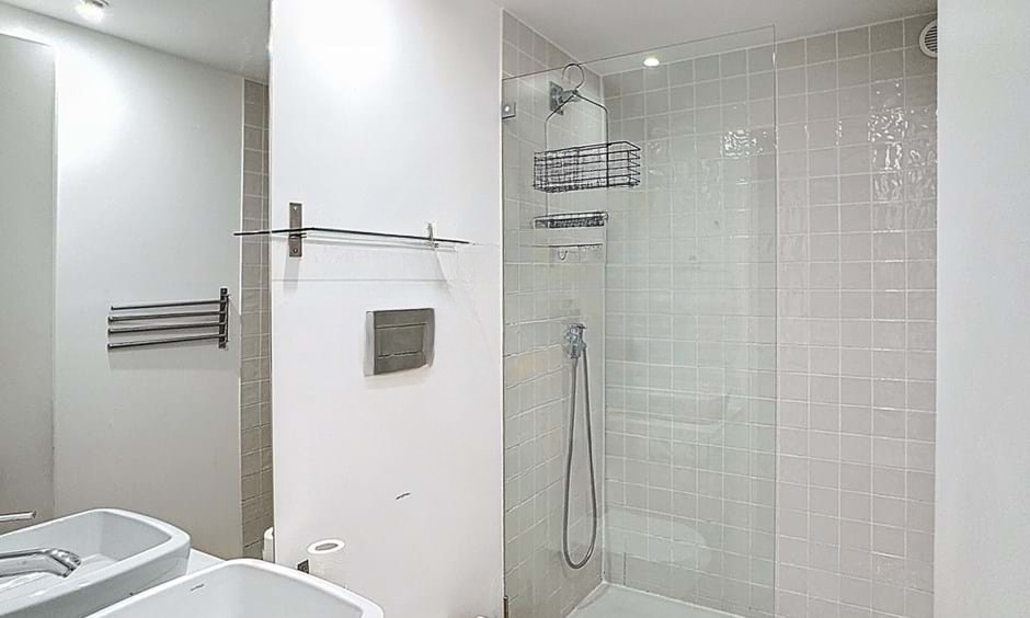 The apartment also stands out for its wooden ceiling and original architectural elements. At the same time, its position at the rear of the building ensures tranquility despite the central location.