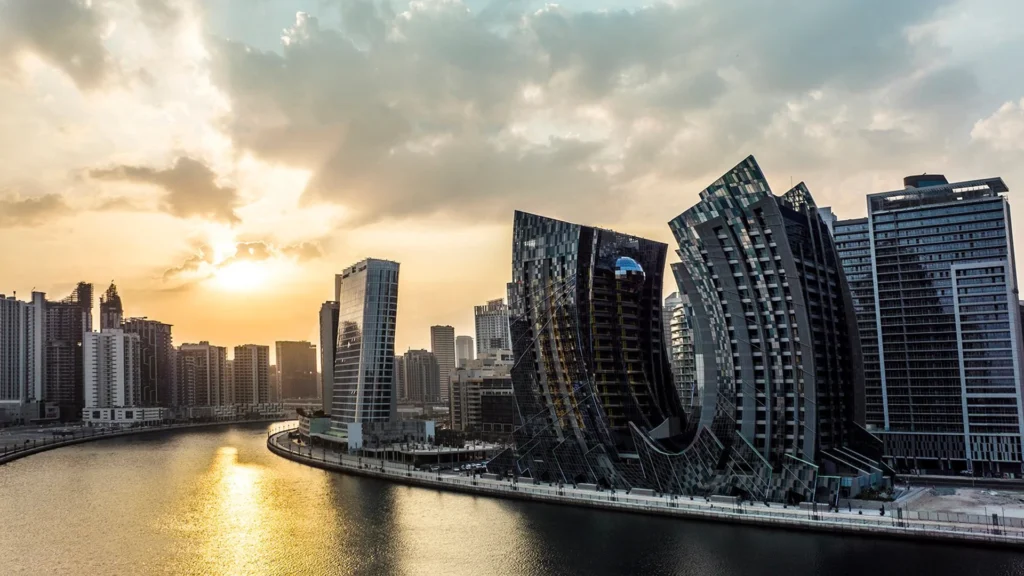DaVinci Tower by Dar Al Arkan rises directly on the Dubai Water Canal. Consequently, residents enjoy a rare waterfront lifestyle in the heart of the city. The tower faces the canal on one side and frames views of Burj Khalifa on the other. Moreover, Downtown Dubai is just minutes away, ensuring seamless access to shopping, dining, and entertainment.