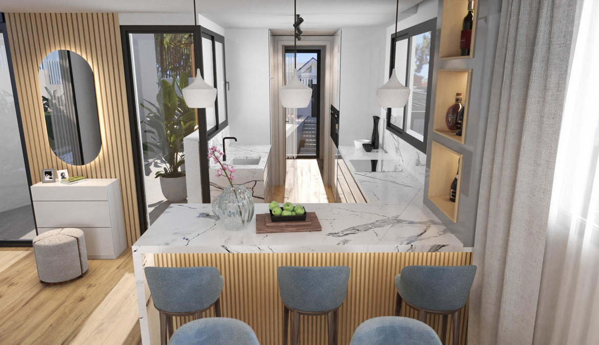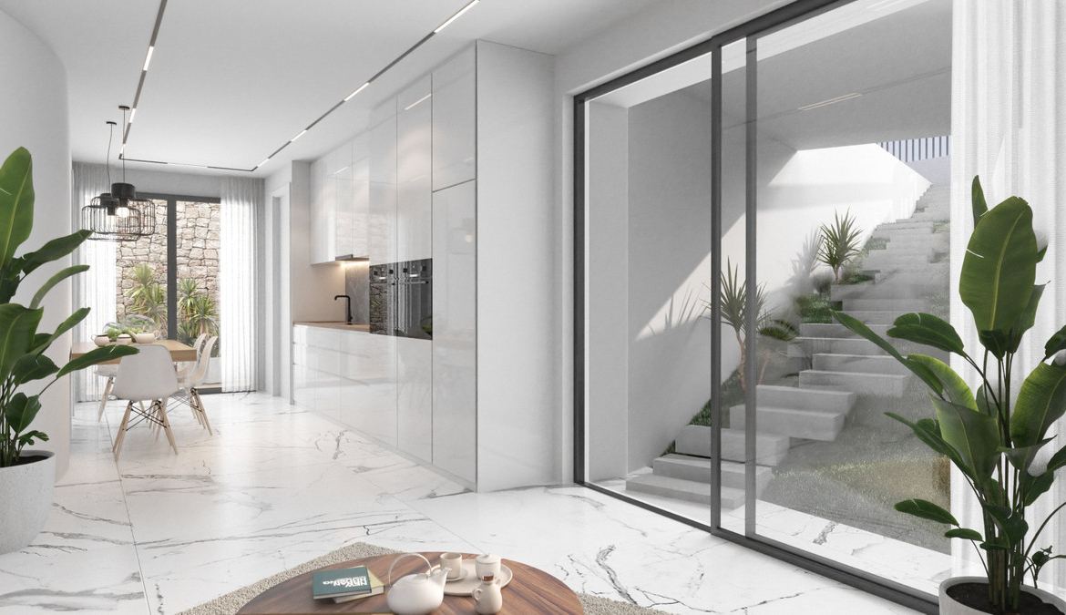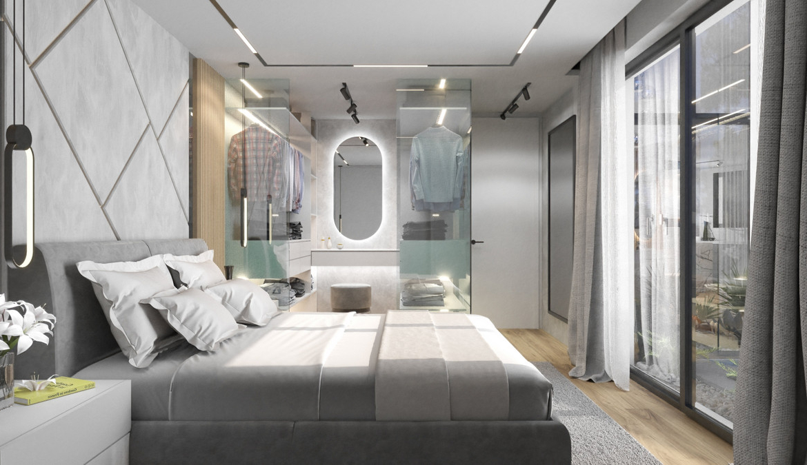 Inside, the villa offers a spacious and stylish interior. The master bedroom includes a large walk-in closet, providing ample storage and comfort. The open-plan living room flows seamlessly into the dining area and modern kitchen, creating a welcoming central space for everyday living and entertaining.