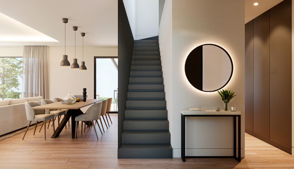 The villa is equipped with a modern home automation system and a sustainable solar energy ecosystem. Solar panels will be installed on the roof and connected to a grid-based inverter system to maximize energy efficiency.