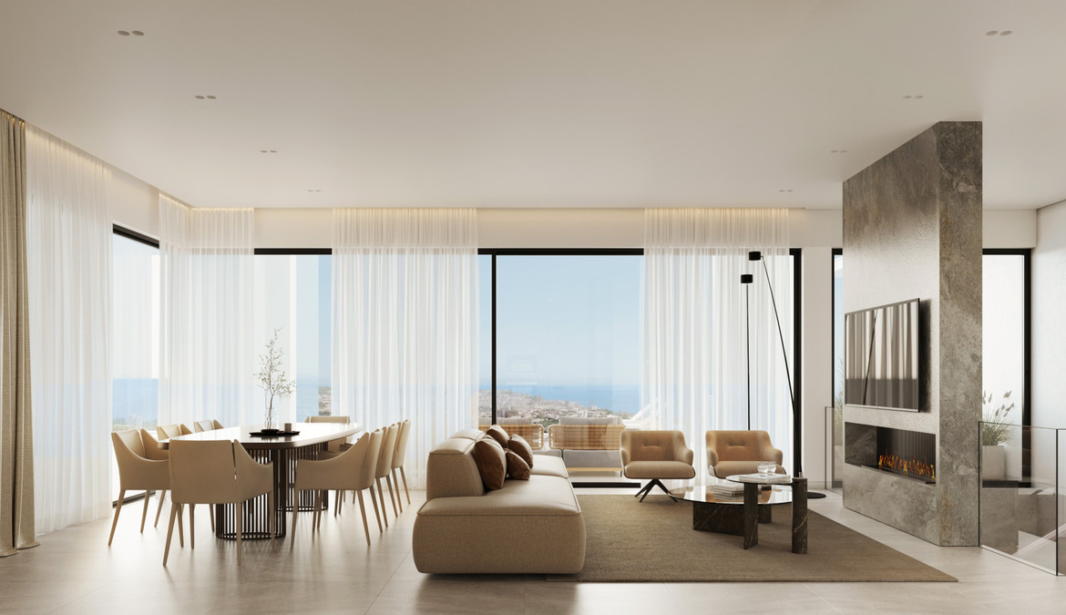 Set within the picturesque mountain landscape, these majestic villas provide a unique opportunity to enjoy breathtaking views over the Mediterranean coastline. The elevated position allows residents to experience the natural beauty of the surroundings from sunrise to sunset, as the sunlight casts a golden glow across the sea and mountains.