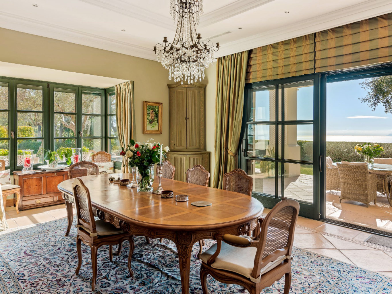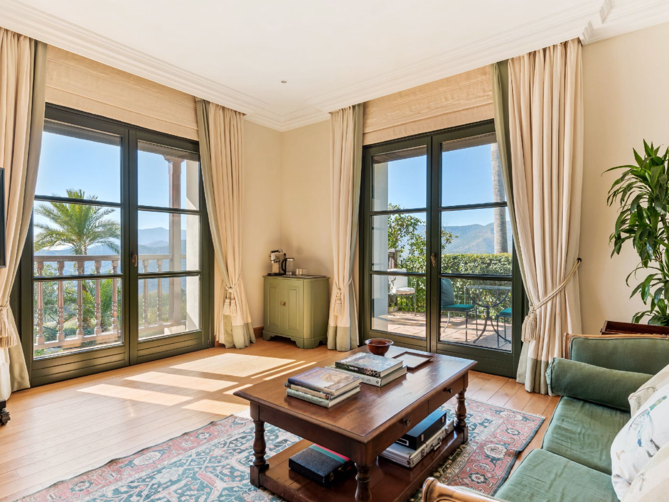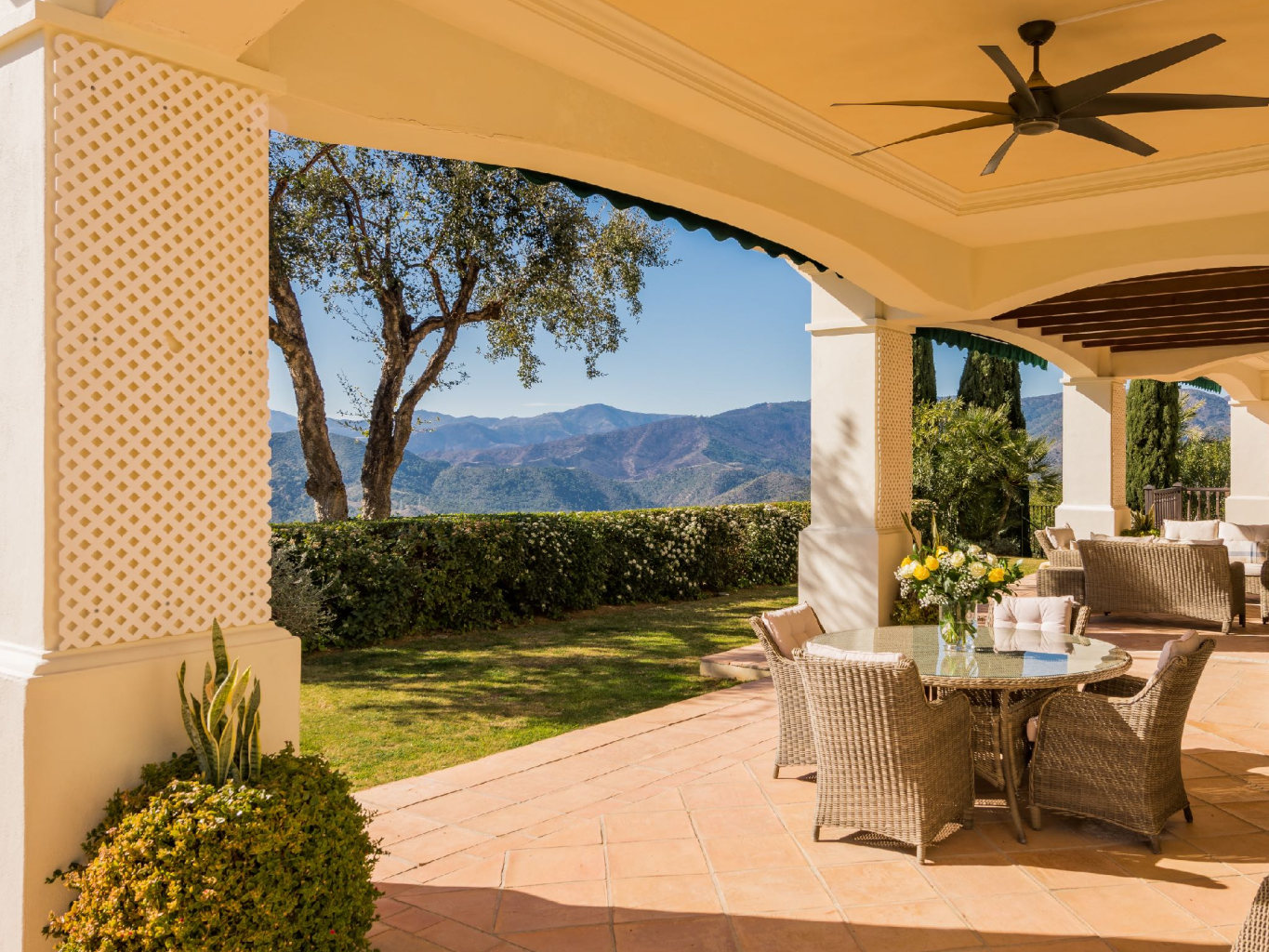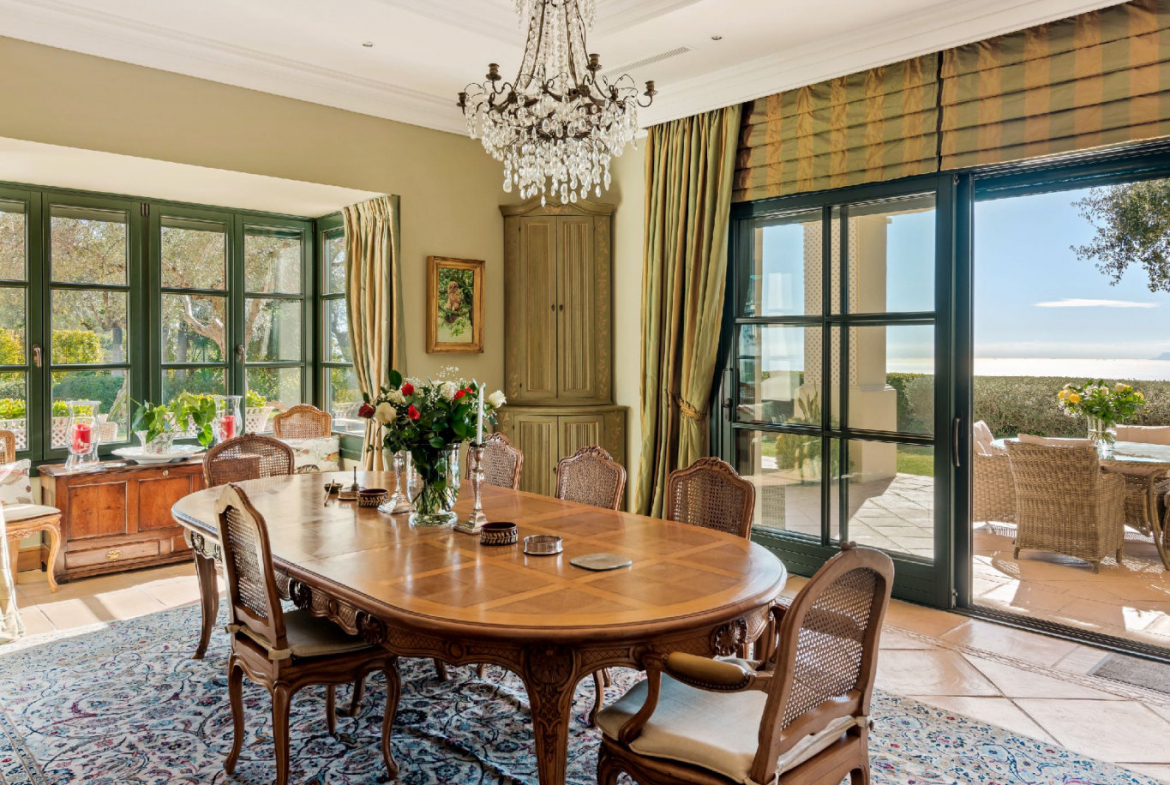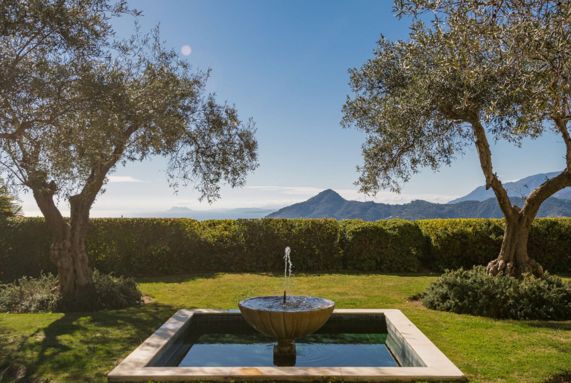 The upper garden level captures the property’s most dramatic views, extending across the golf course, sea, and mountains. In addition, mature landscaping enhances privacy and integrates the villa harmoniously into its surroundings.
