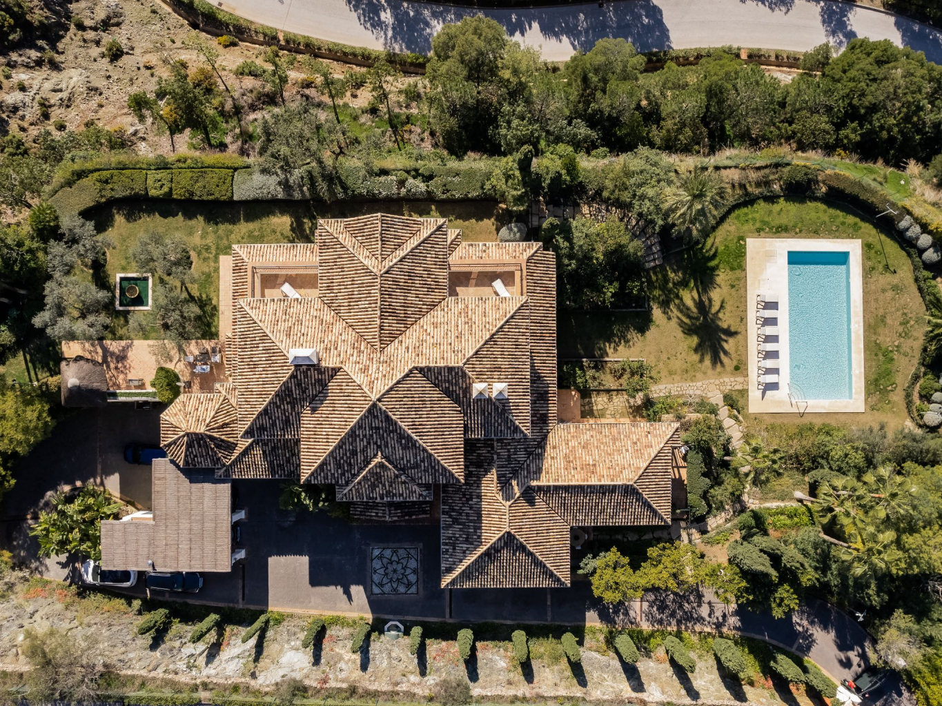 Electric gates open onto a private driveway measuring approximately 20 to 30 metres, leading directly to the main entrance. The villa’s orientation maximizes sunlight exposure while maintaining comfortable, shaded terrace areas. In addition, the elevated setting enhances both security and visual dominance over the landscape. Consequently, the home delivers the classic La Zagaleta lifestyle: secure, established, and exceptionally private.
