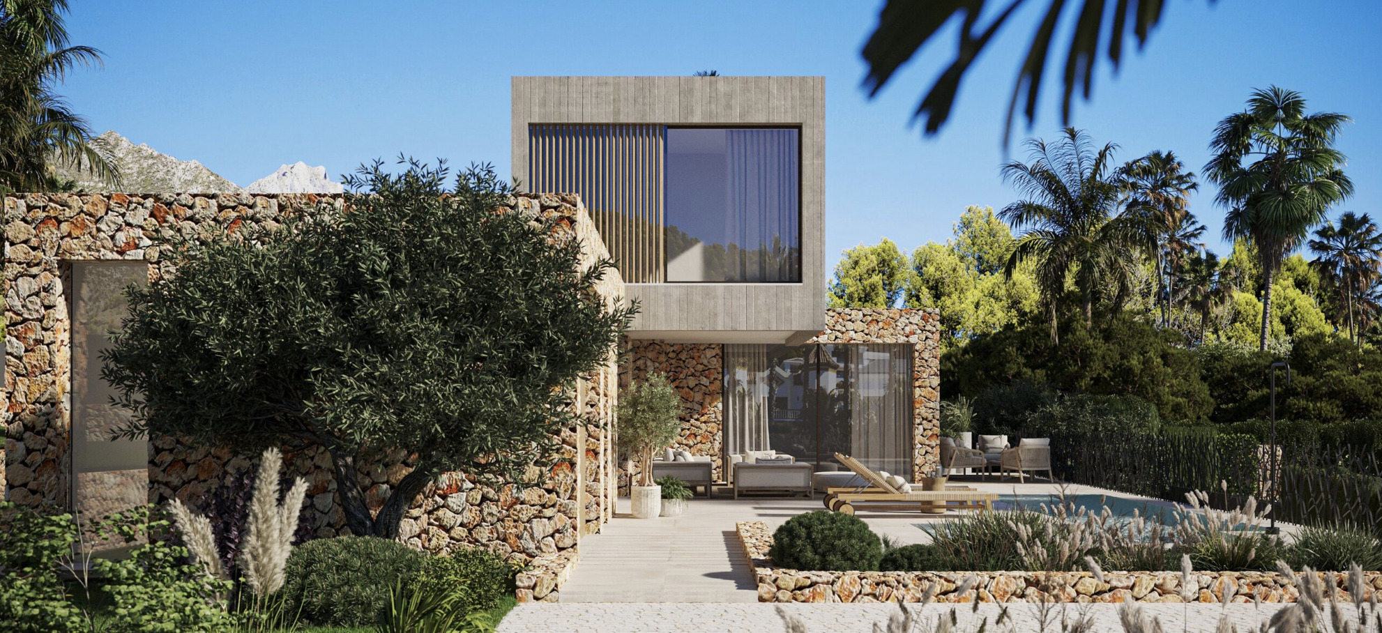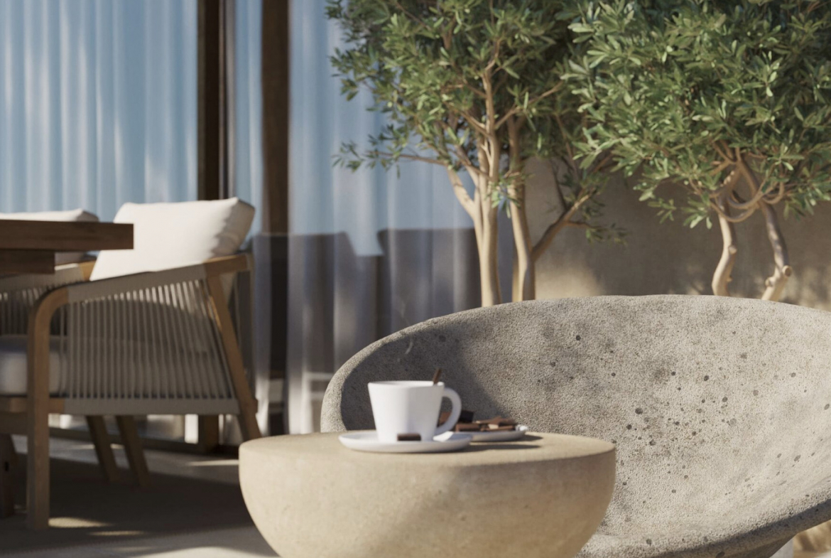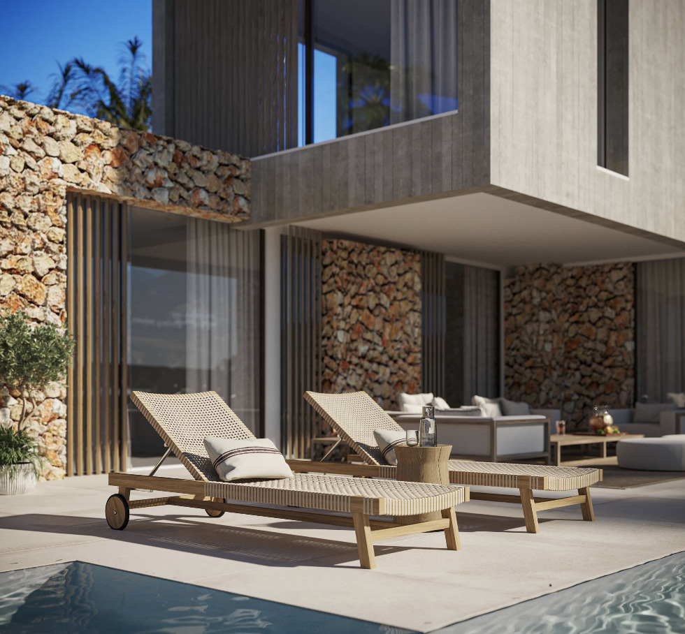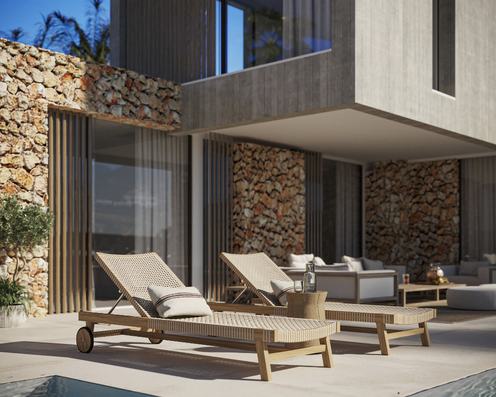 The exterior spaces are designed to fully enjoy the Mediterranean climate. The ground floor includes two covered terraces and two open terraces.
