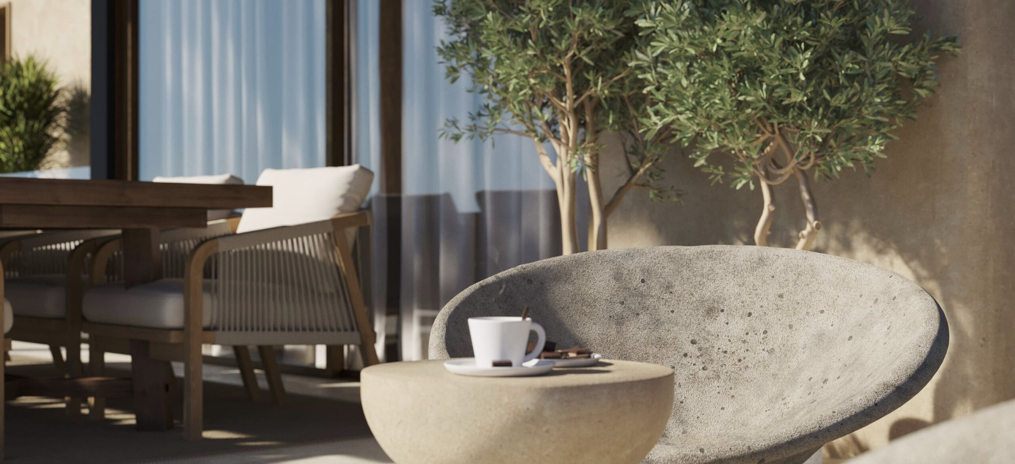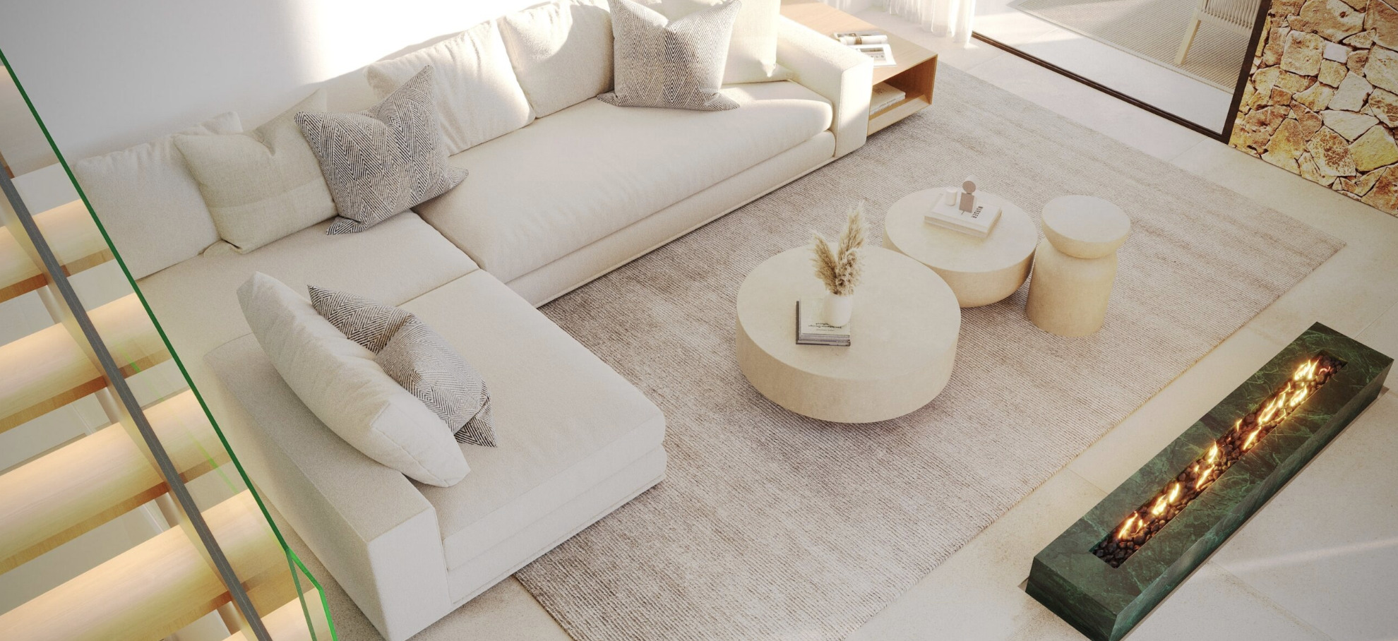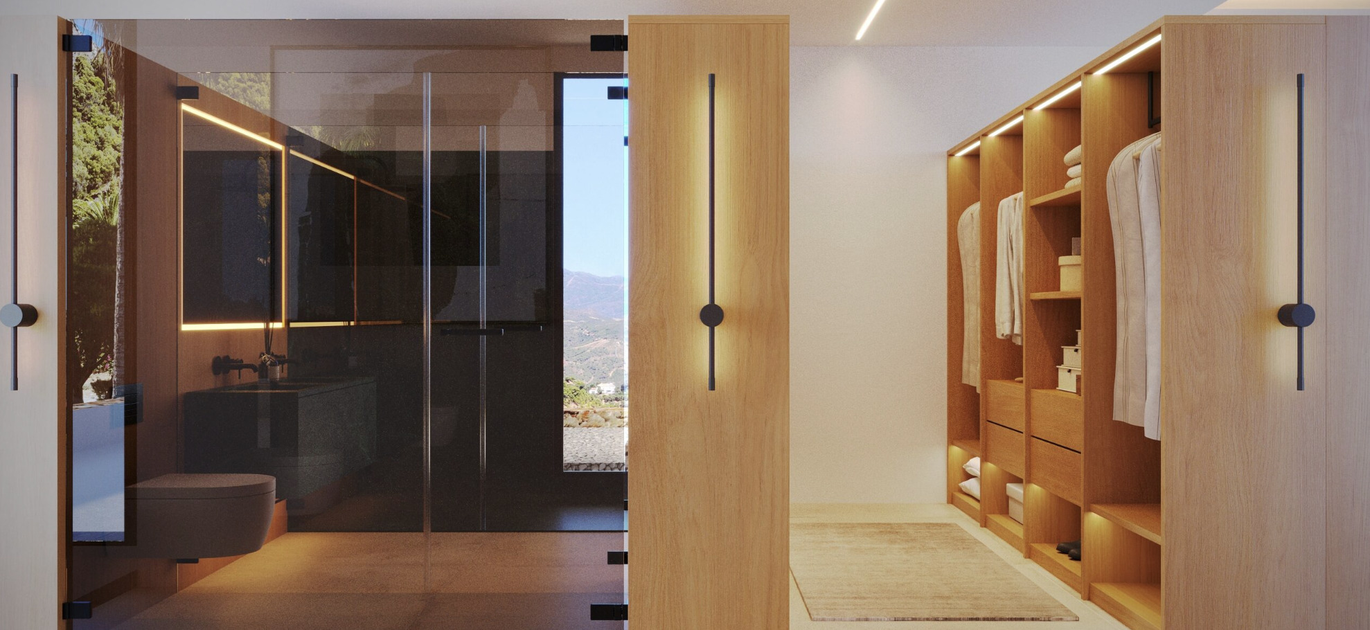 The exterior spaces are designed to fully enjoy the Mediterranean climate. The ground floor includes two covered terraces and two open terraces.