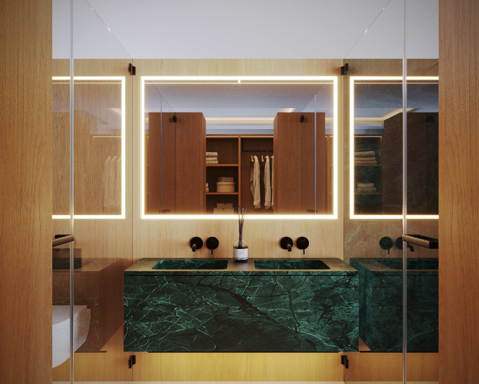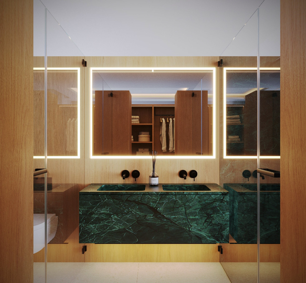 In addition, this floor includes a spacious open hall, a multifunctional room, and a patio. Therefore, the space can easily be adapted for different uses such as a gym, office or leisure area.