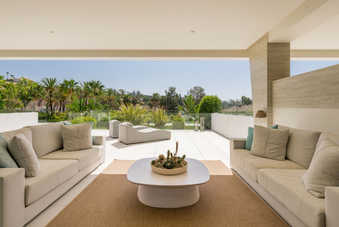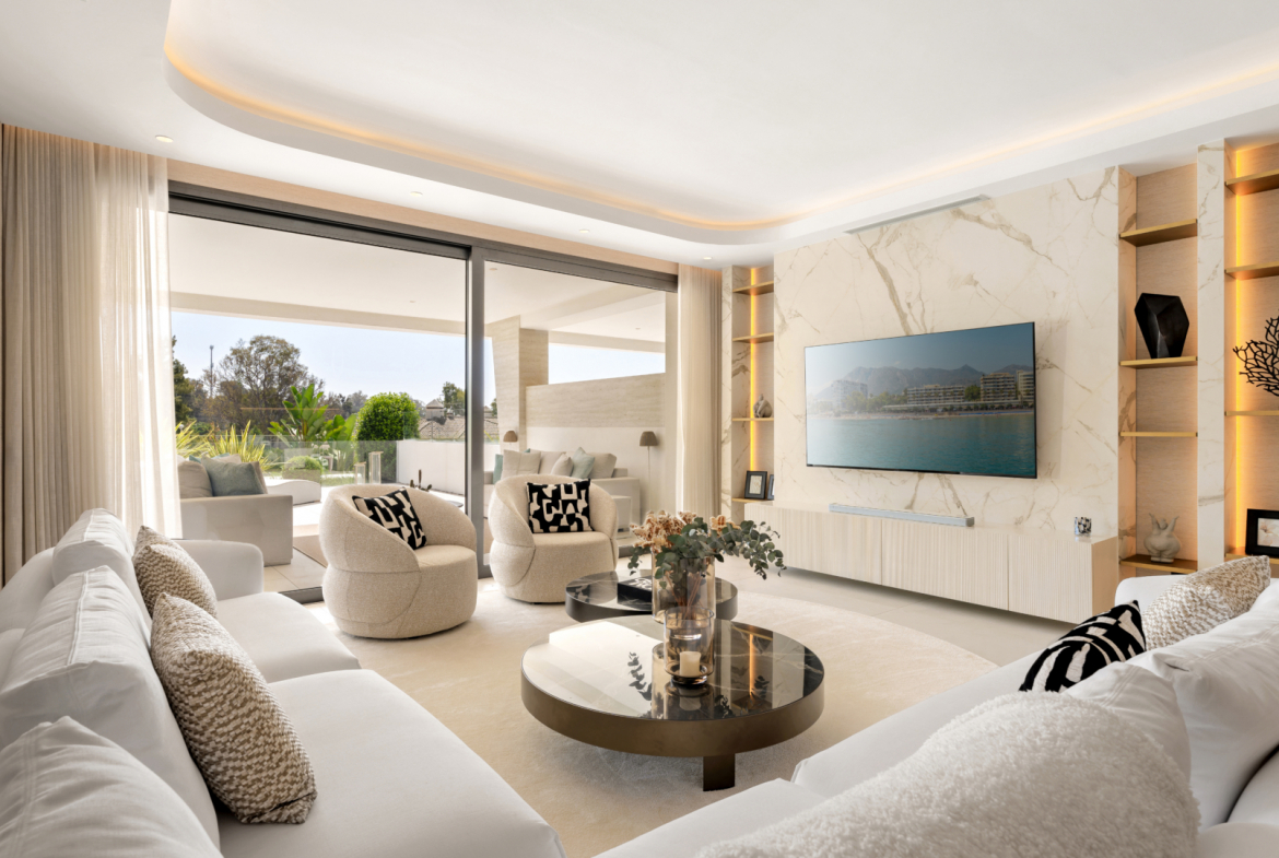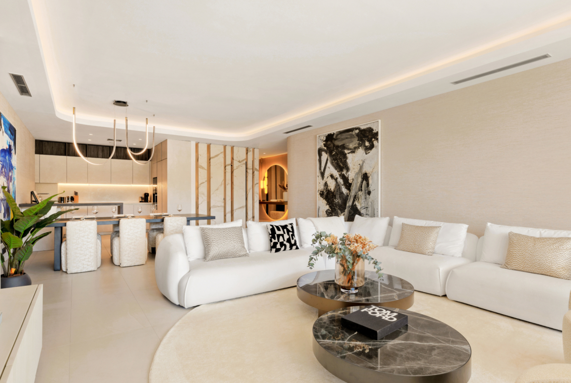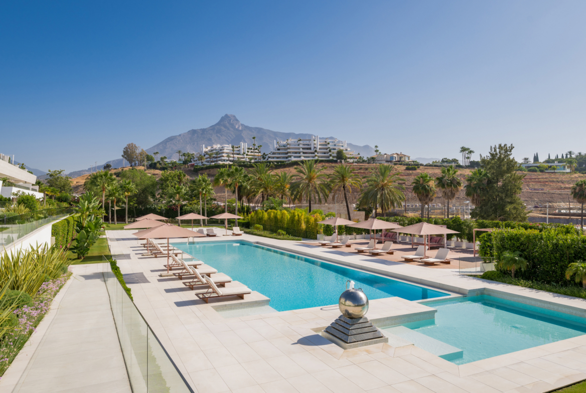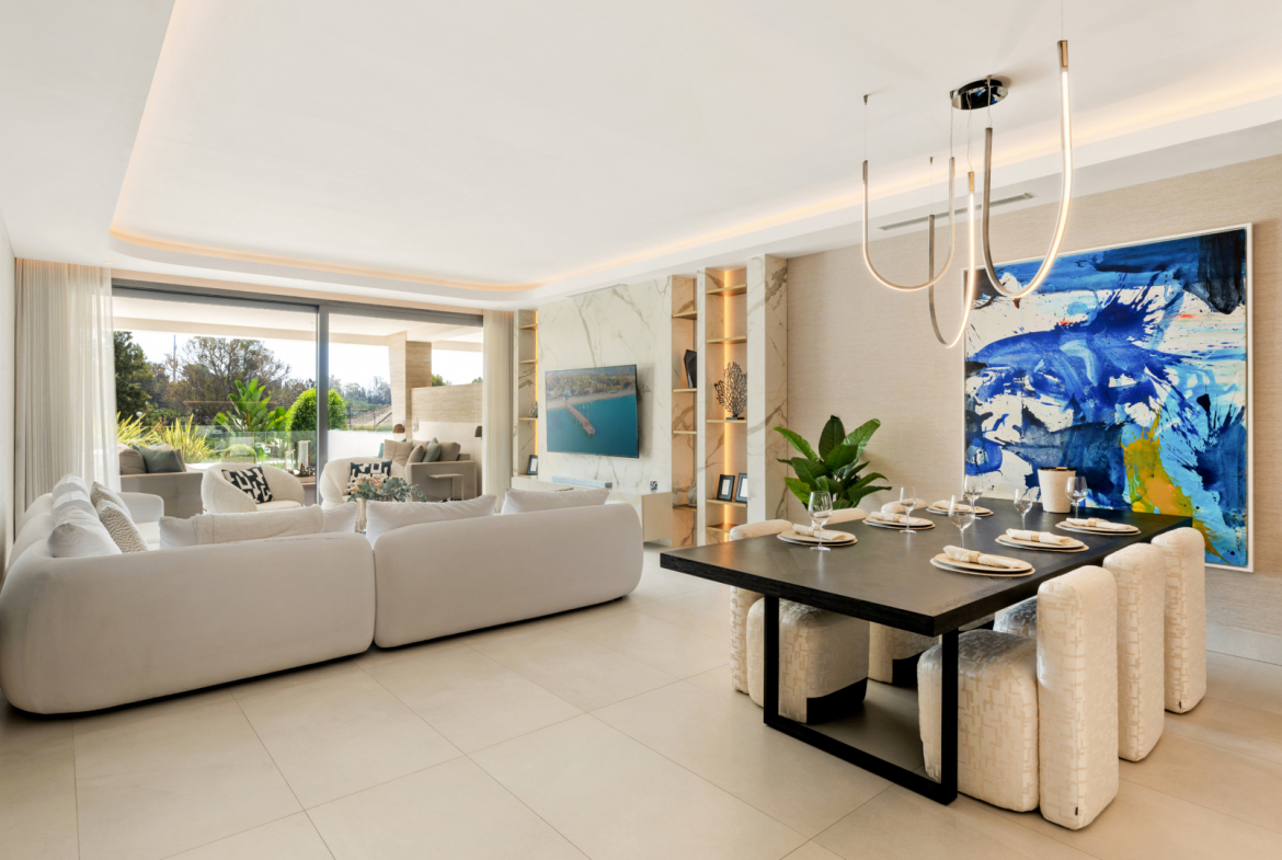 Located in the heart of Marbella’s Golden Mile, this remarkable ground-floor duplex is part of the prestigious EPIC Marbella complex, developed in collaboration with renowned Italian fashion house Fendi. Designed as a five-star private resort, the complex offers a refined lifestyle with top-tier services, privacy, and unbeatable proximity to the beach, Puente Romano, and Puerto Banús.