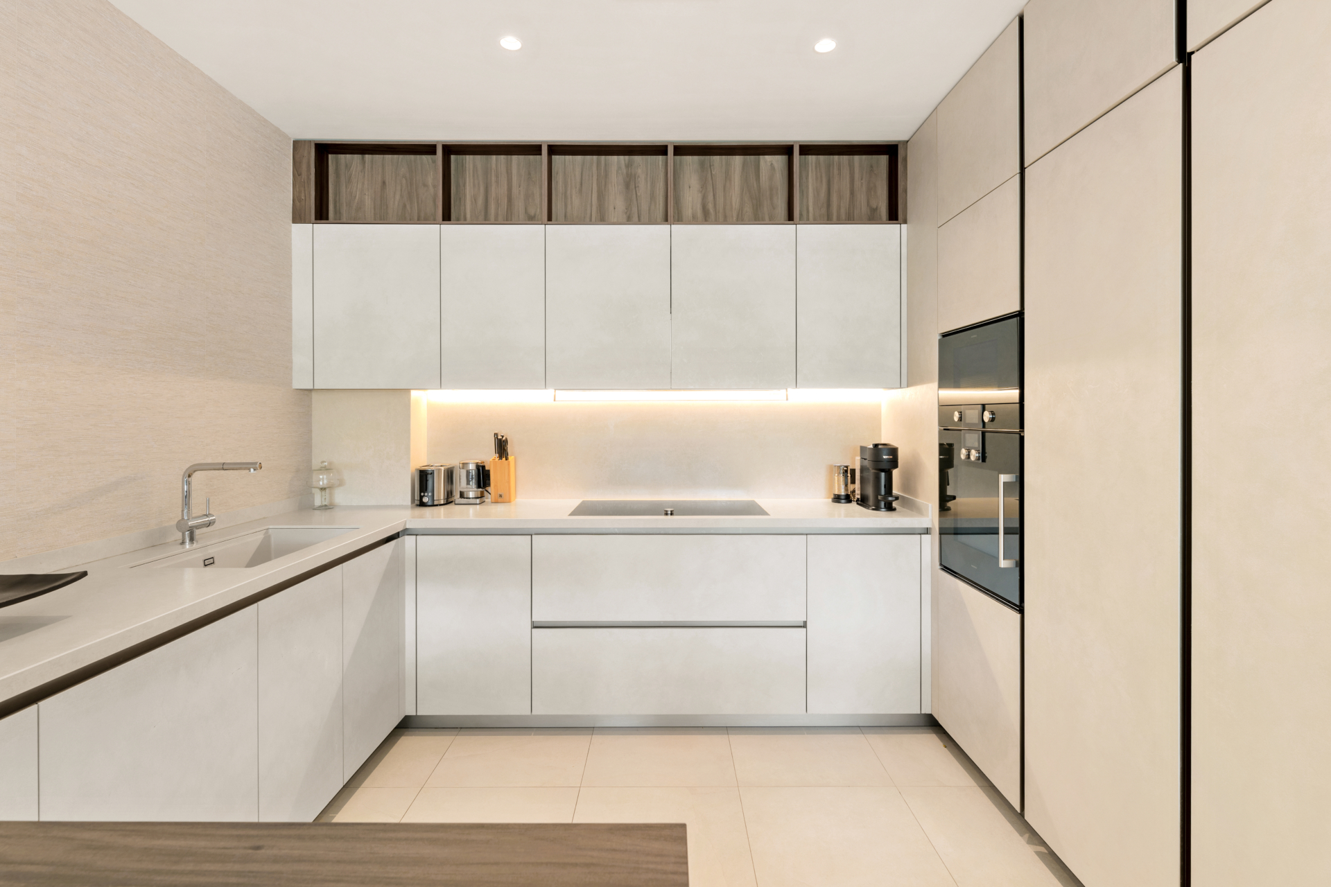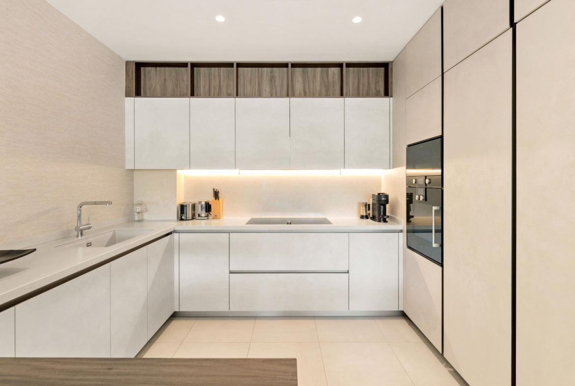 Designed by Ambience Home Design, the interiors feature high-quality materials and thoughtful detailing. Home automation, individual climate control, and underfloor heating throughout ensure comfort and efficiency in every season.