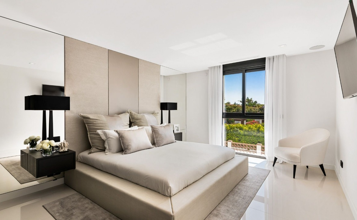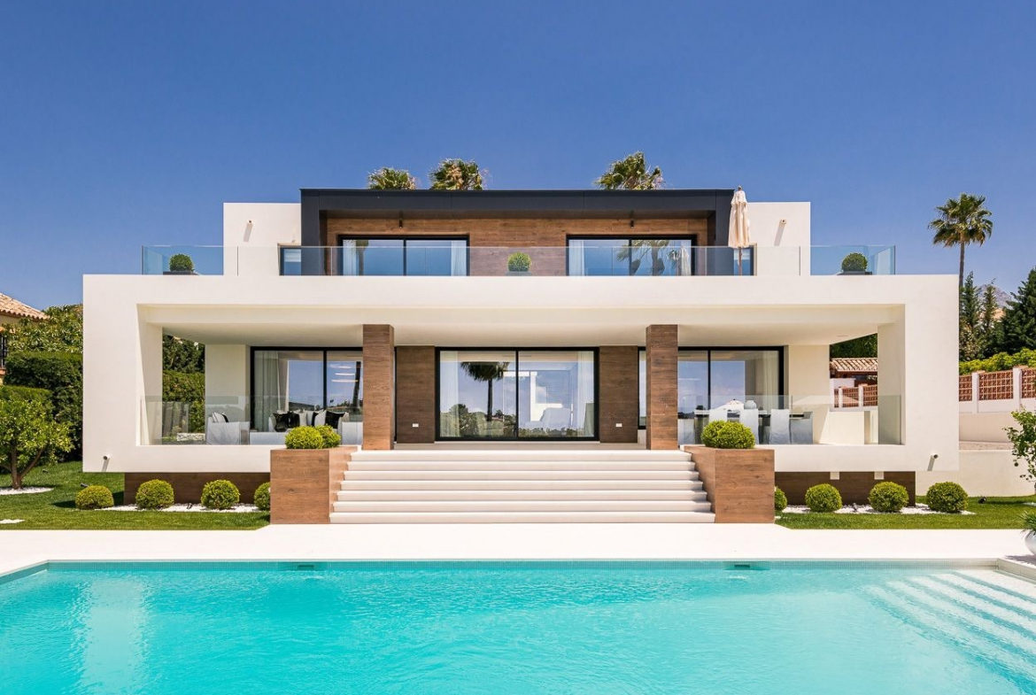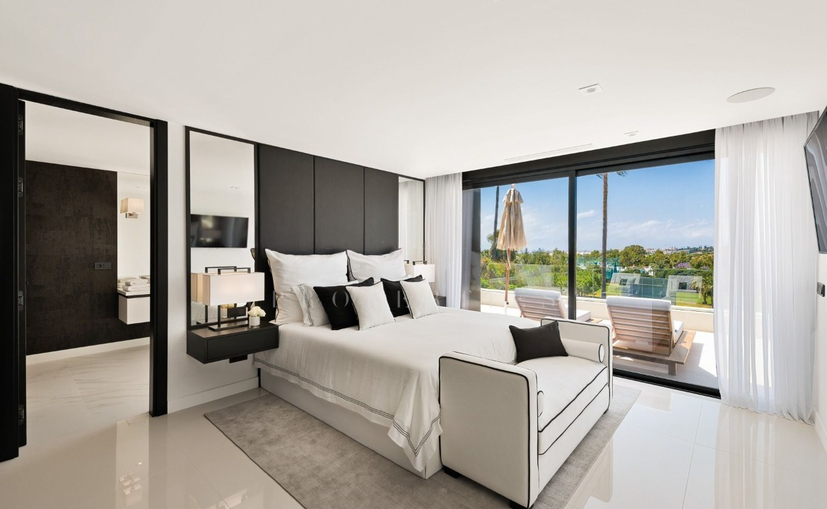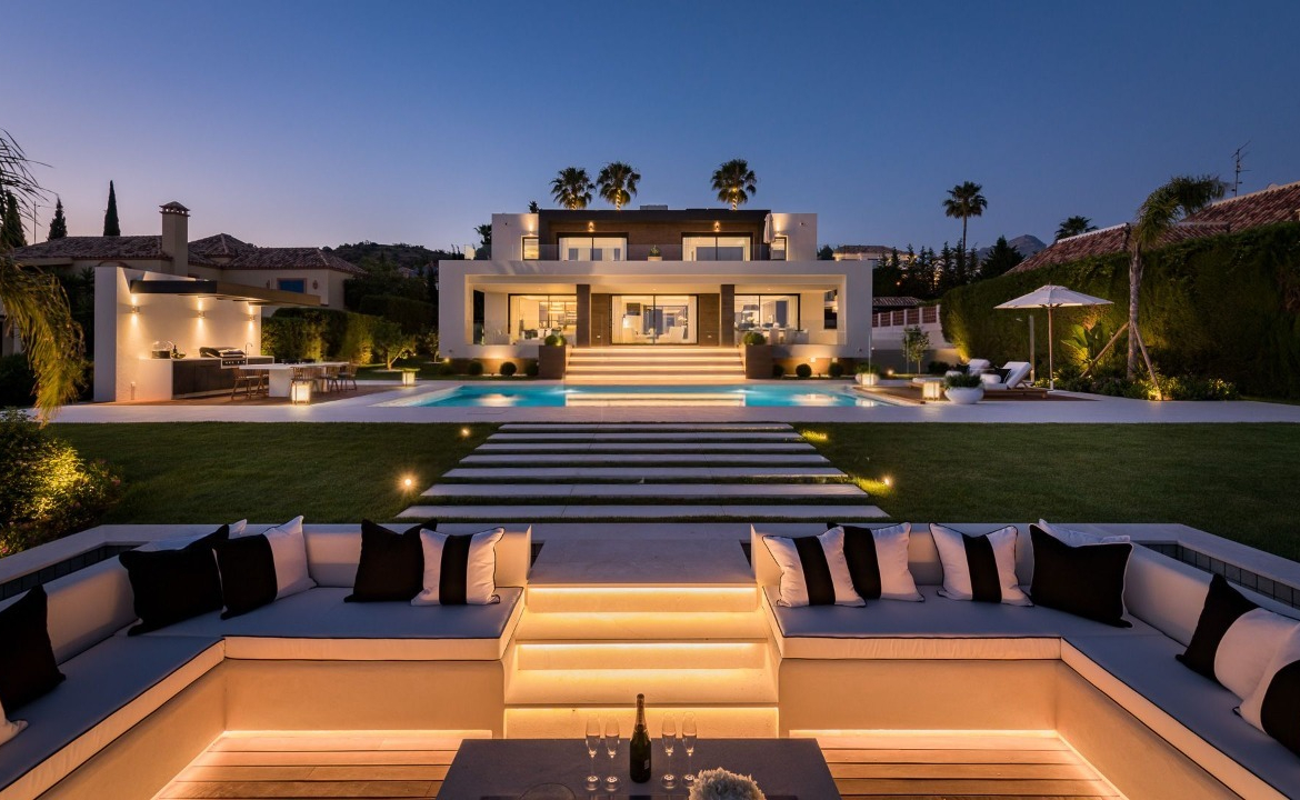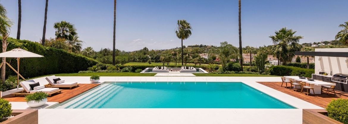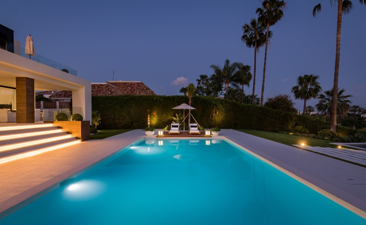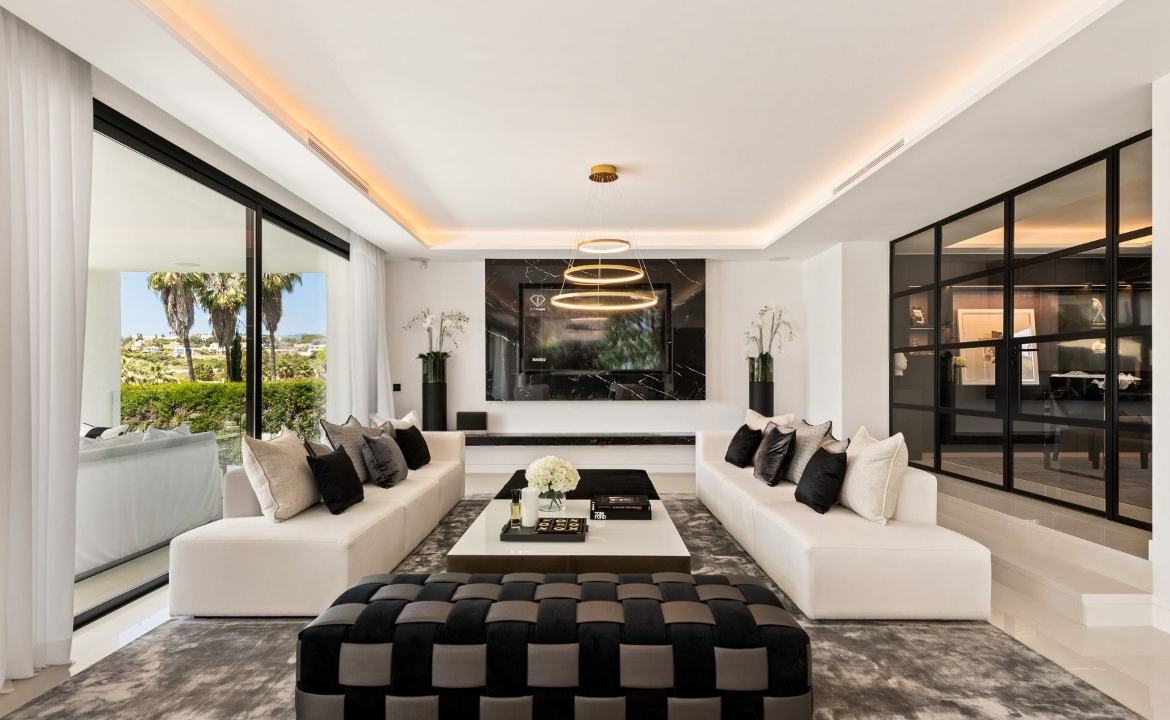 This spectacular villa, designed by an award-winning architect, is nestled in the heart of Nueva Andalucía’s Golf Valley. Spread over three floors, the southwest-facing villa exudes elegance and luxury.