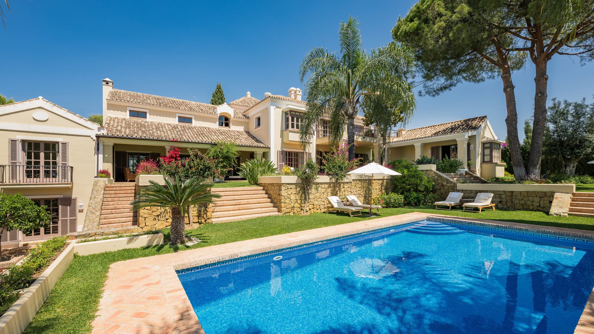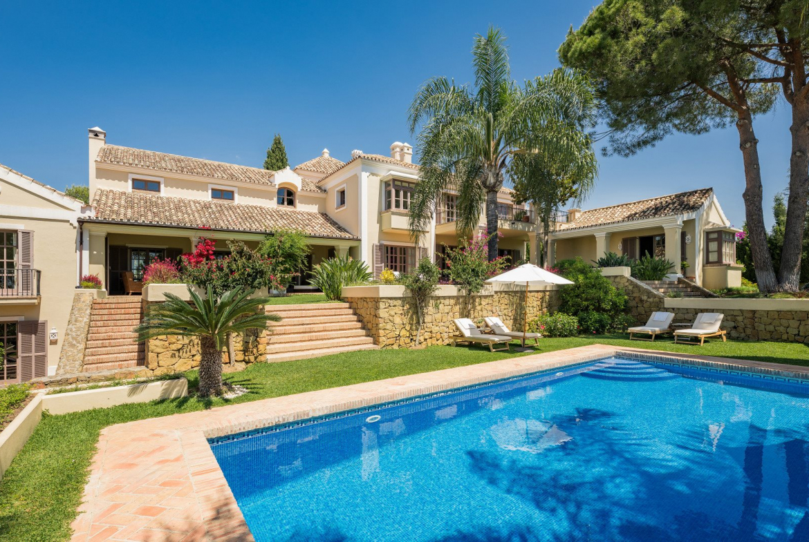 This exceptional Andalusian-inspired estate is located within the prestigious gated community of El Madroñal, in Benahavís. Designed by renowned architect César de Leyva, the property spans two expansive plots. As a result, it embodies timeless Mediterranean living, where privacy, elegance, and panoramic views come together.