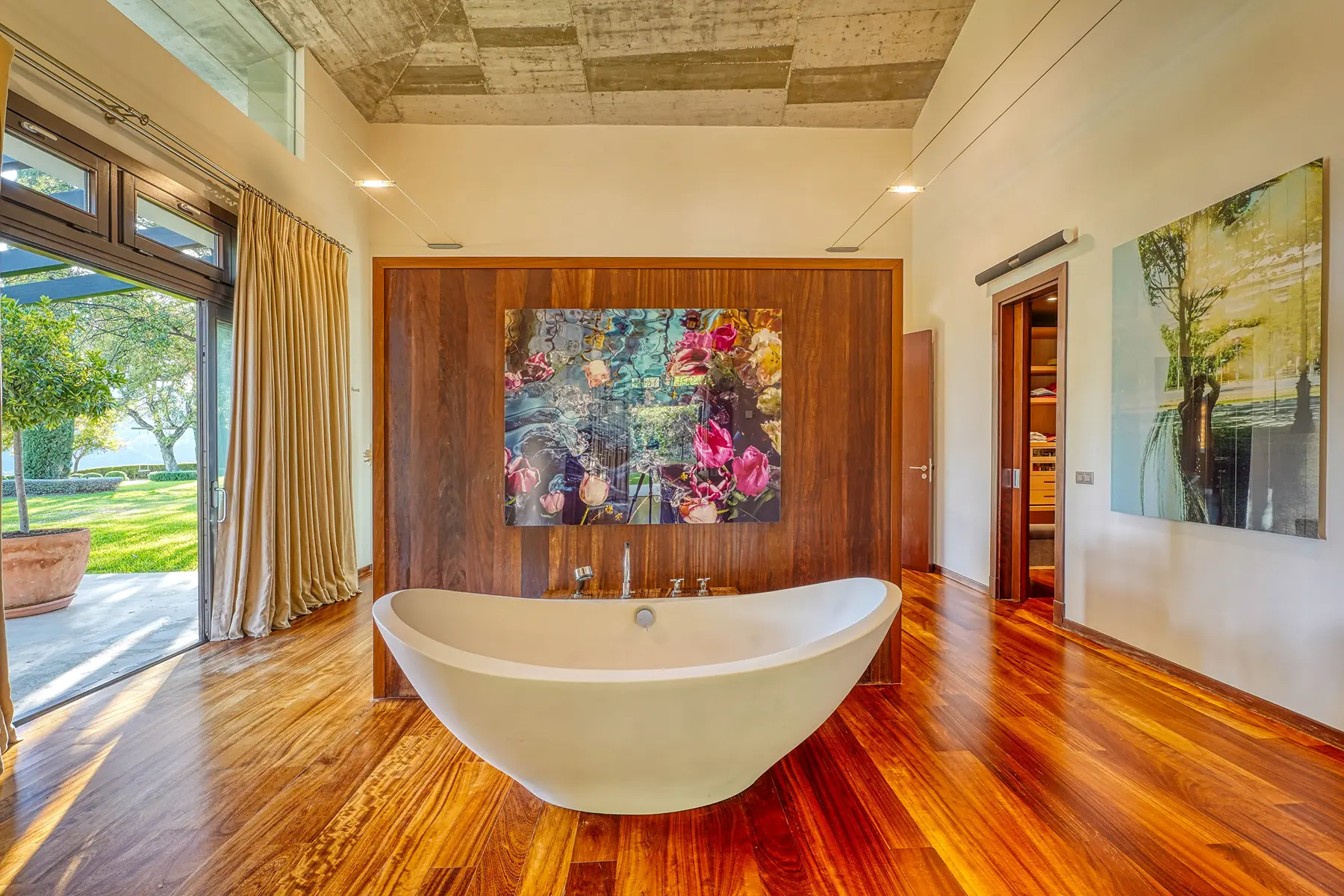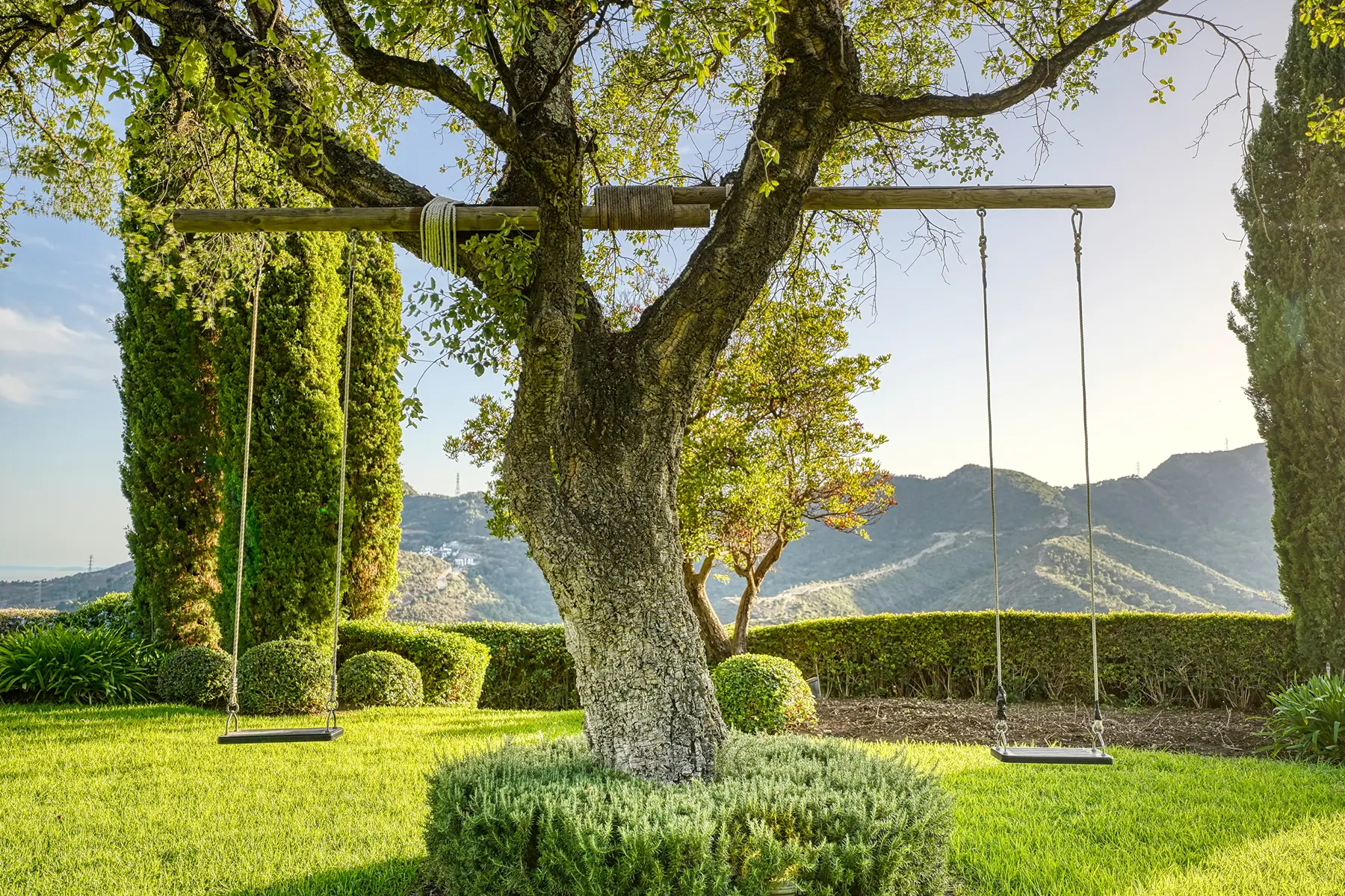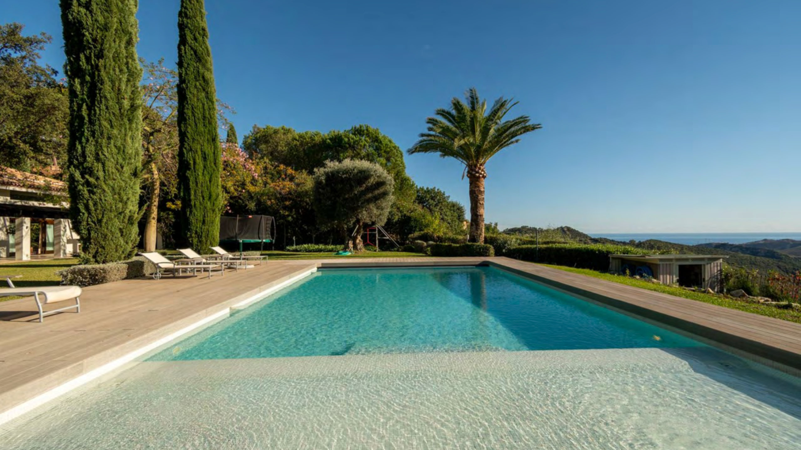 Beautifully landscaped subtropical gardens surround the residence. These gardens enhance both privacy and tranquillity. Outdoor amenities include a heated swimming pool, wooden sun deck, covered terraces, outdoor dining areas, and barbecue zones. In addition, the garden unfolds across several levels designed to capture the surrounding views. The plot itself exceeds the average size for the area, creating an exceptional sense of seclusion.