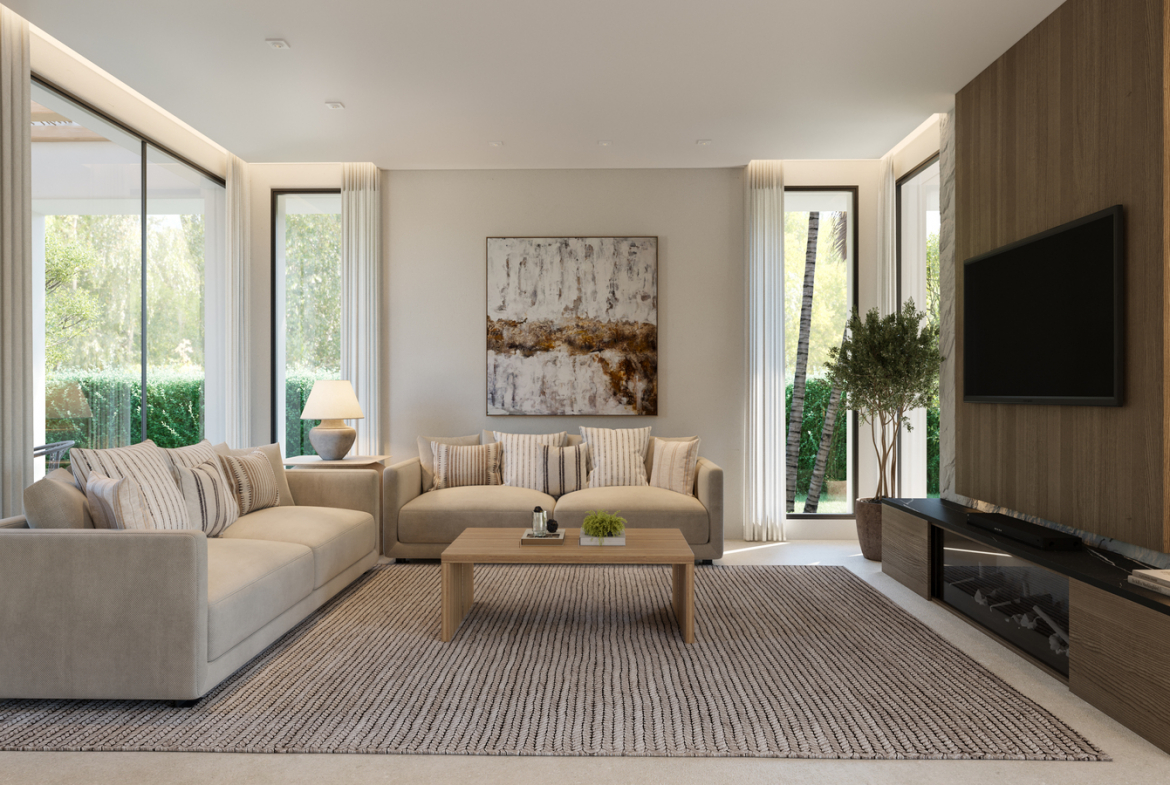 This elegant residence features five spacious bedrooms, each with its own en-suite bathroom. As a result, the villa offers both privacy and comfort for residents and guests.