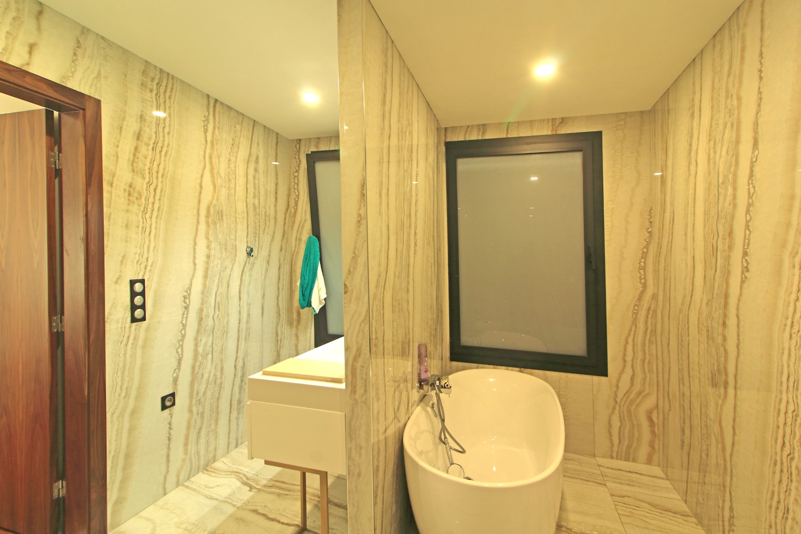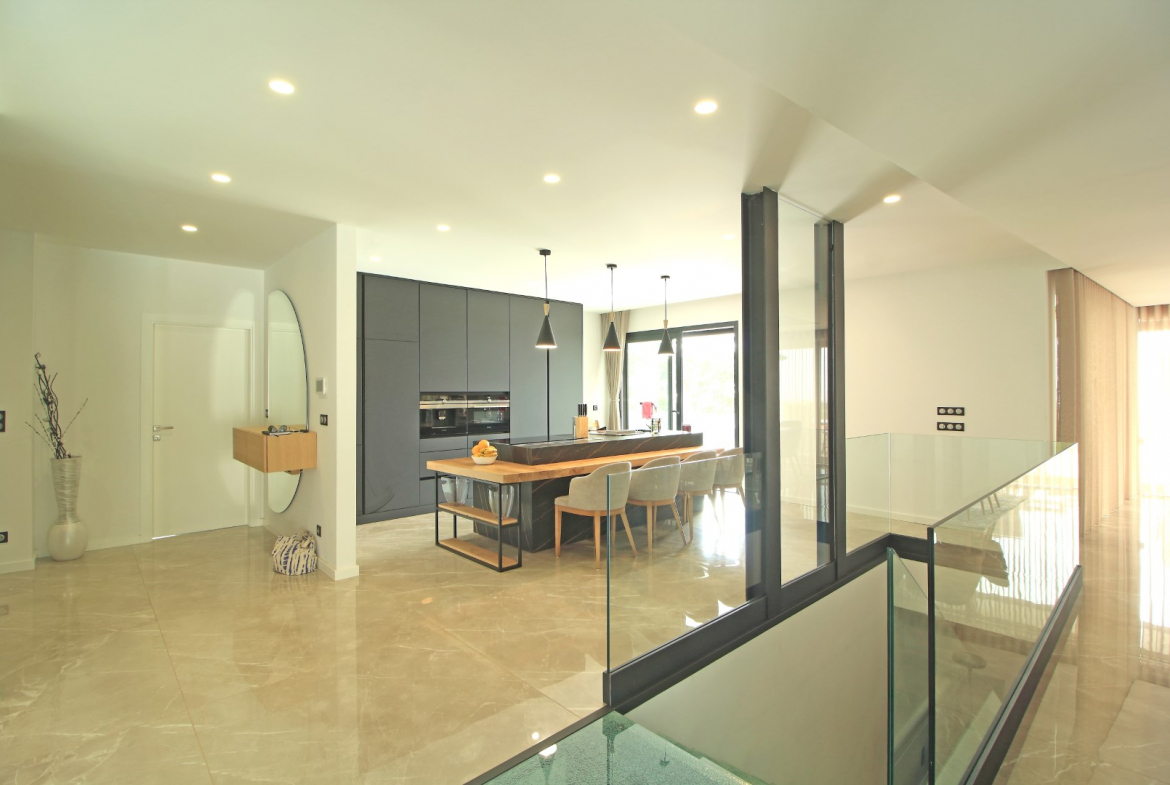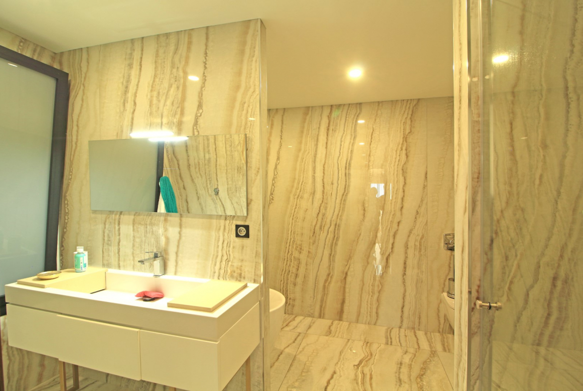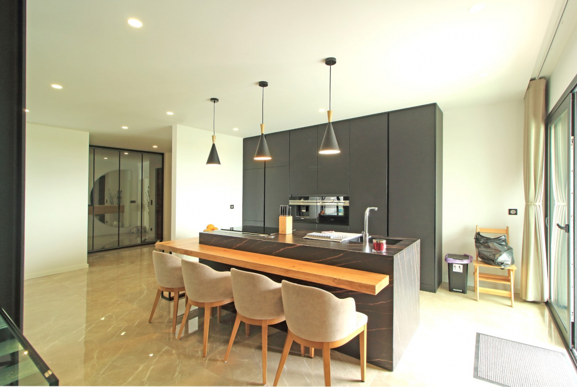 At the front of the villa, a magnificent terrace faces the sea. Therefore, it provides the ideal setting to relax and enjoy the surrounding landscape. Whether for quiet mornings or sunset evenings, this outdoor area creates a unique living experience. Furthermore, the unobstructed views add exceptional value to the property.