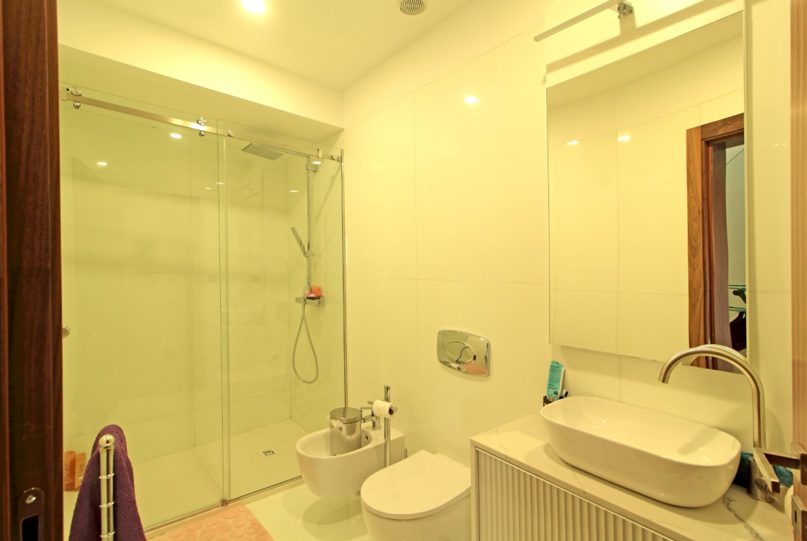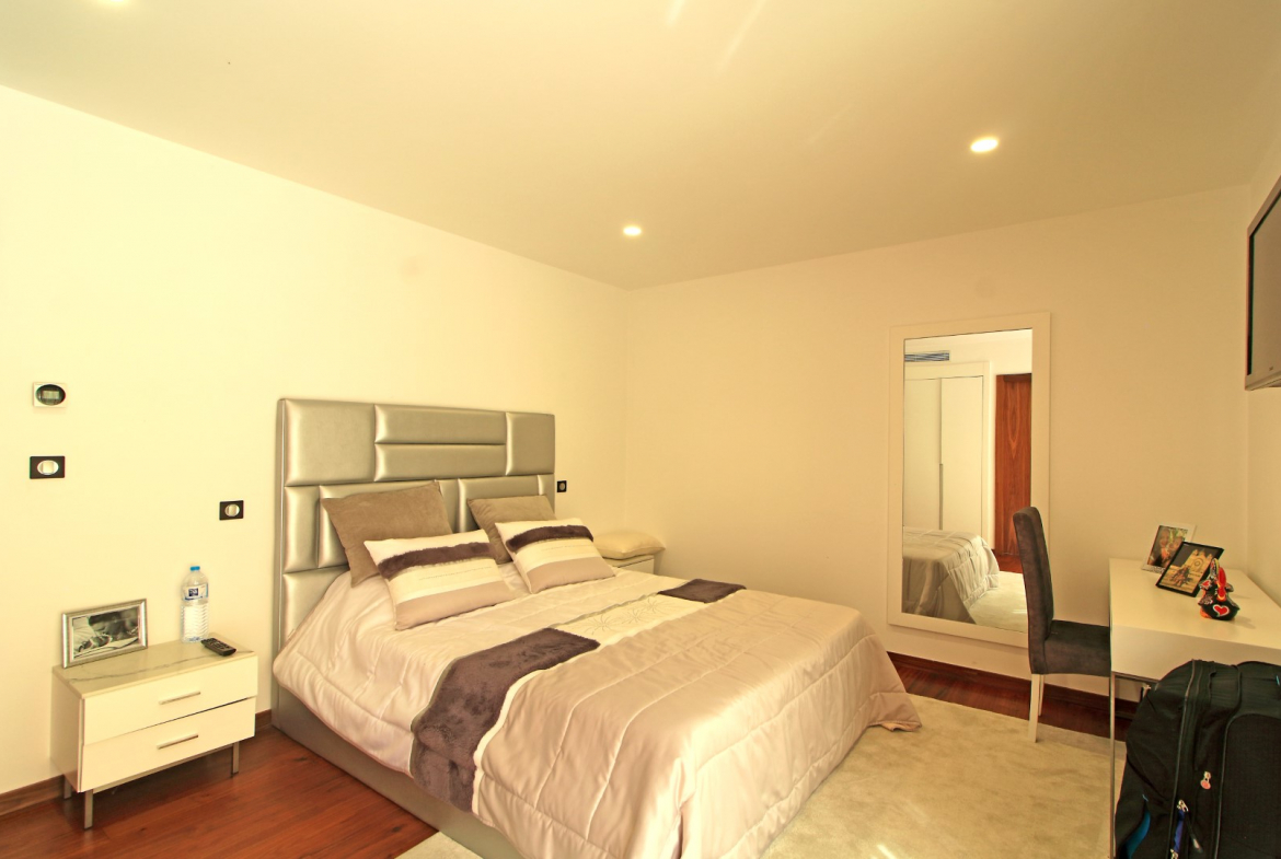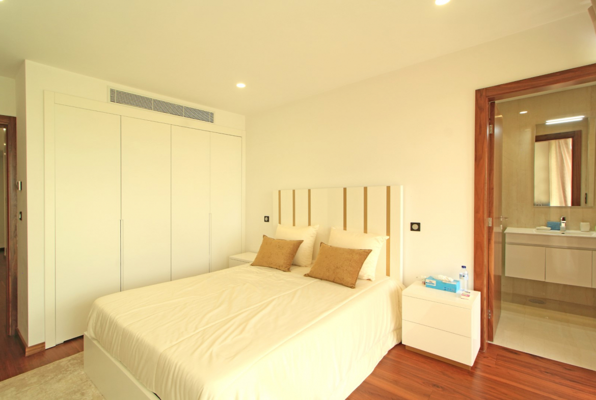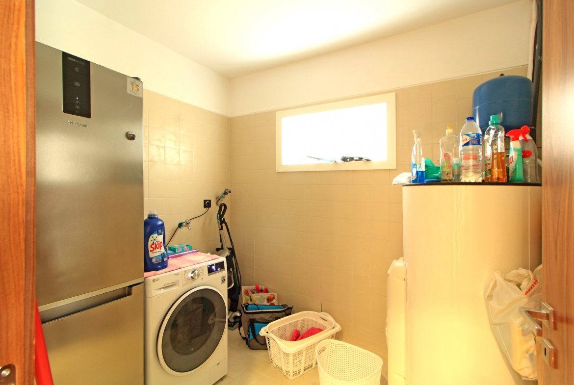 The lower floor offers excellent privacy and comfort. Here, you will find five bedrooms, including four suites. Additionally, this level includes a main bathroom, a fully equipped laundry room, and a dedicated machine room. As a result, the villa ensures both convenience and efficient organization of daily living spaces.