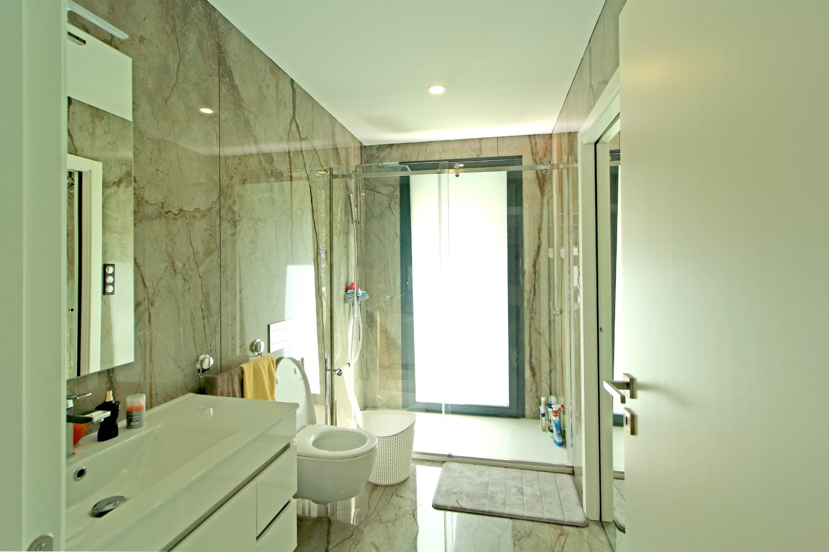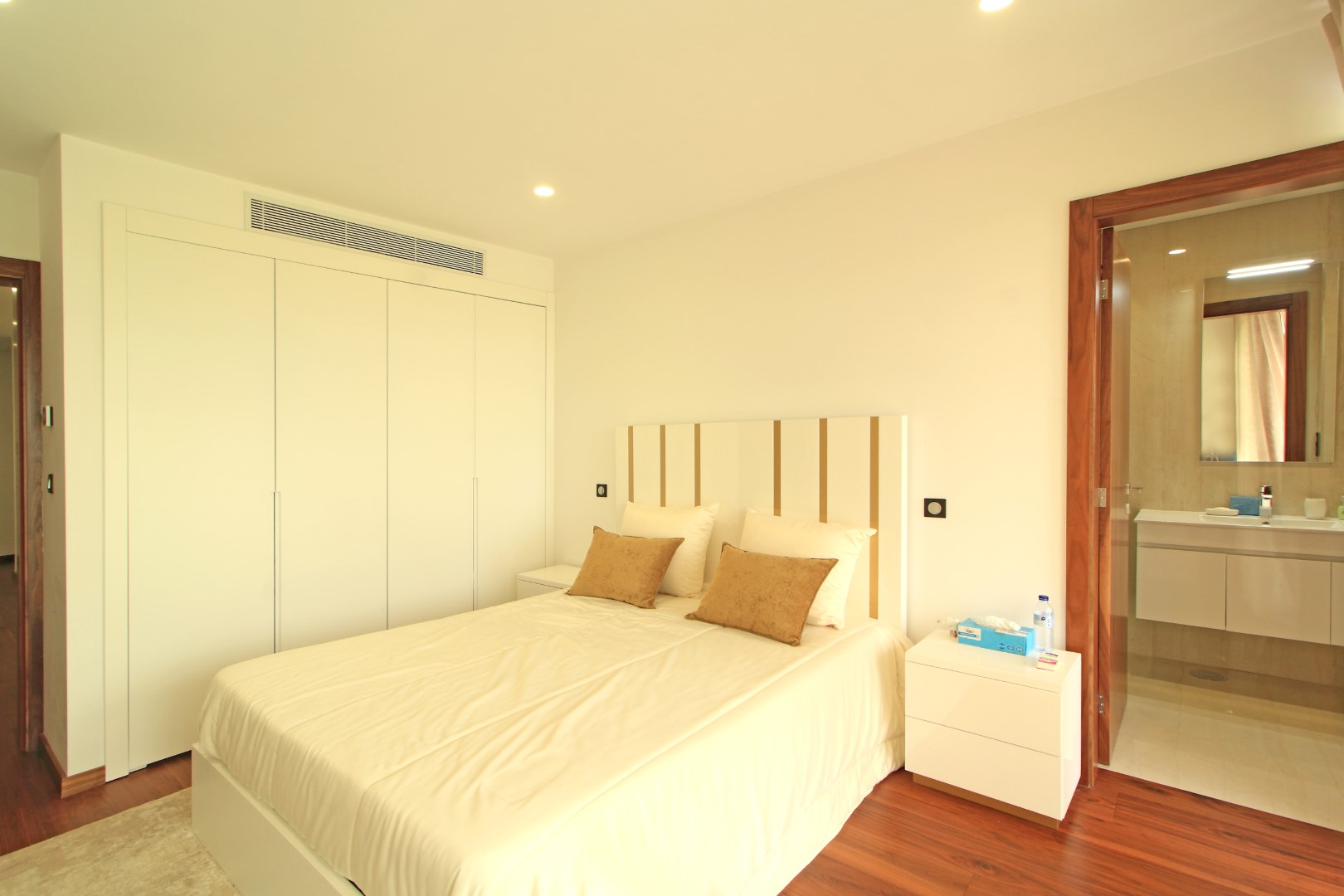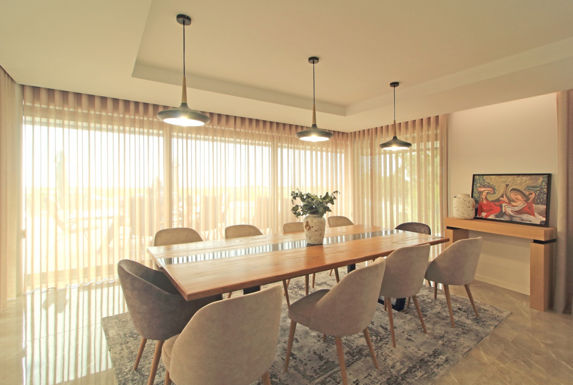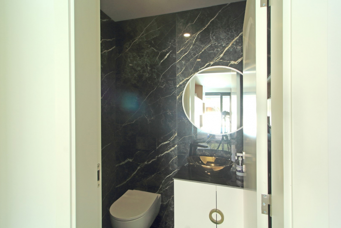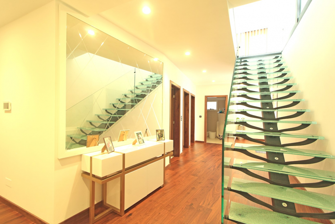 The lower floor offers excellent privacy and comfort. Here, you will find five bedrooms, including four suites. Additionally, this level includes a main bathroom, a fully equipped laundry room, and a dedicated machine room. As a result, the villa ensures both convenience and efficient organization of daily living spaces.