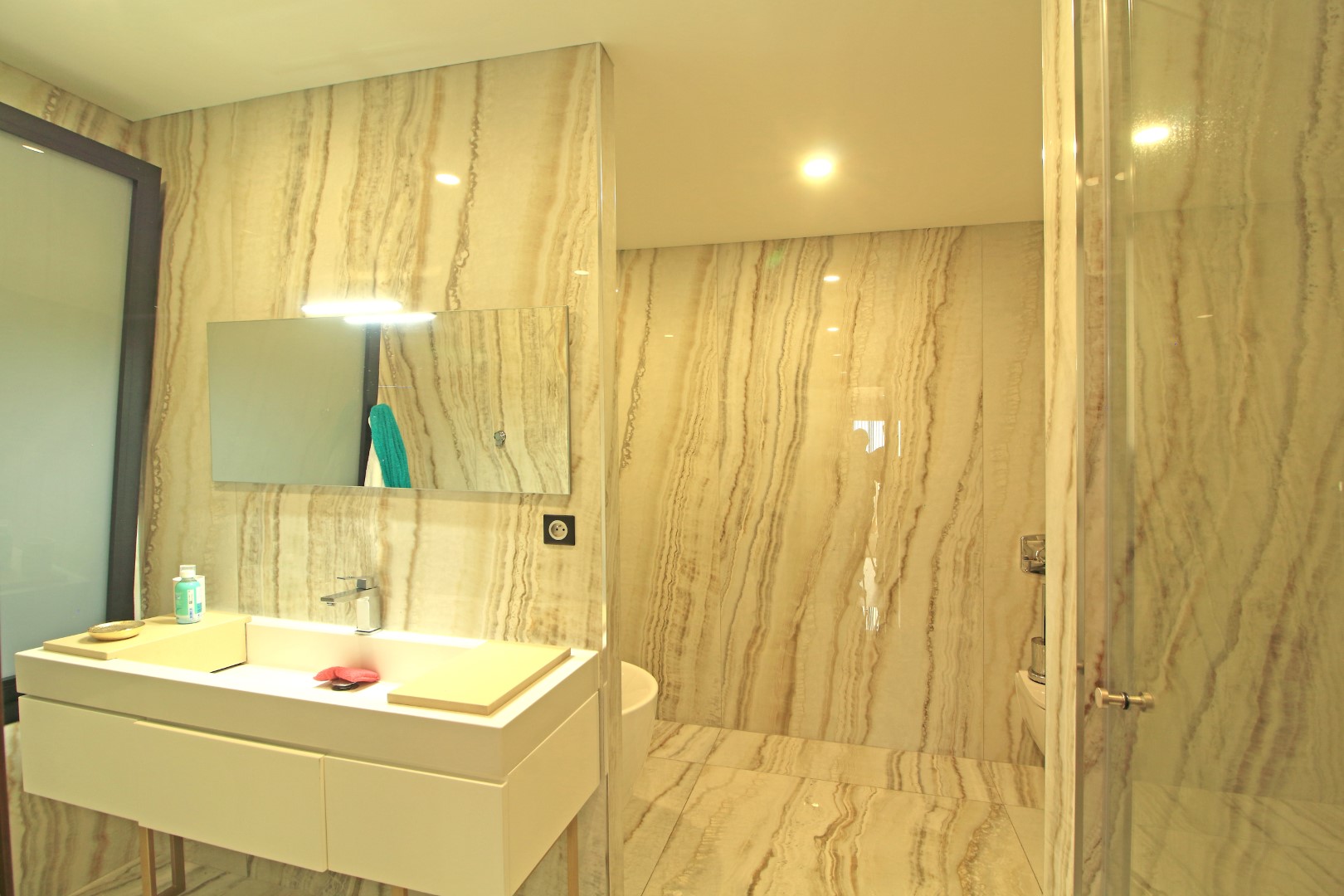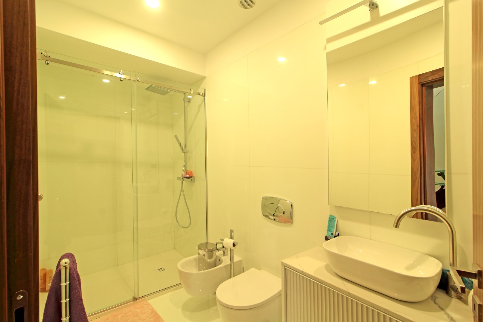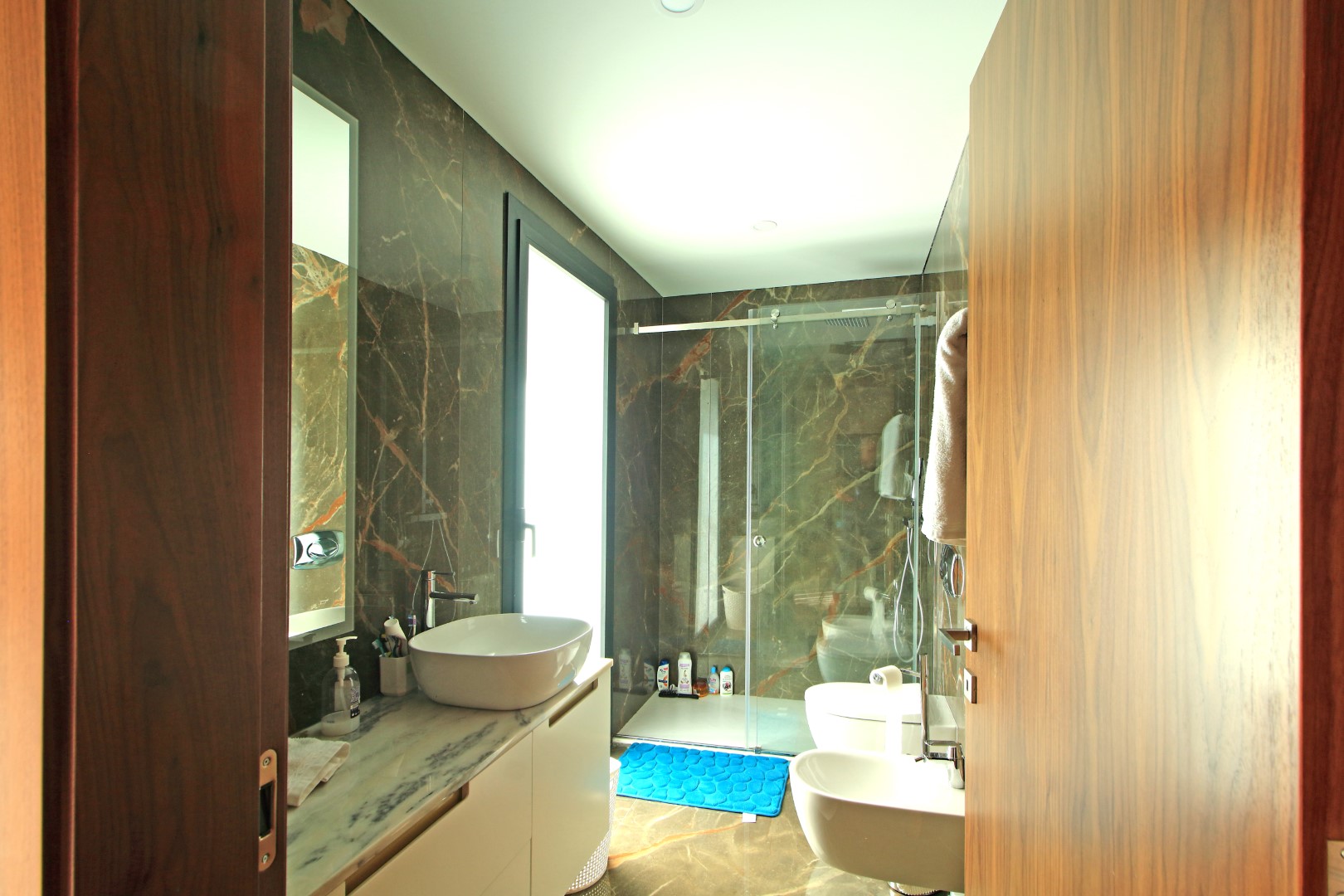 The lower floor offers excellent privacy and comfort. Here, you will find five bedrooms, including four suites. Additionally, this level includes a main bathroom, a fully equipped laundry room, and a dedicated machine room. As a result, the villa ensures both convenience and efficient organization of daily living spaces.