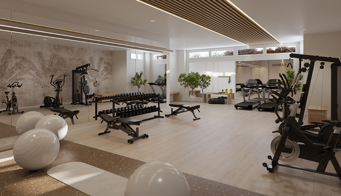 The gated community features carefully designed communal areas where residents can relax and enjoy their leisure time. Facilities include a swimming pool, a chill-out area, and a fully equipped gym with a sauna.