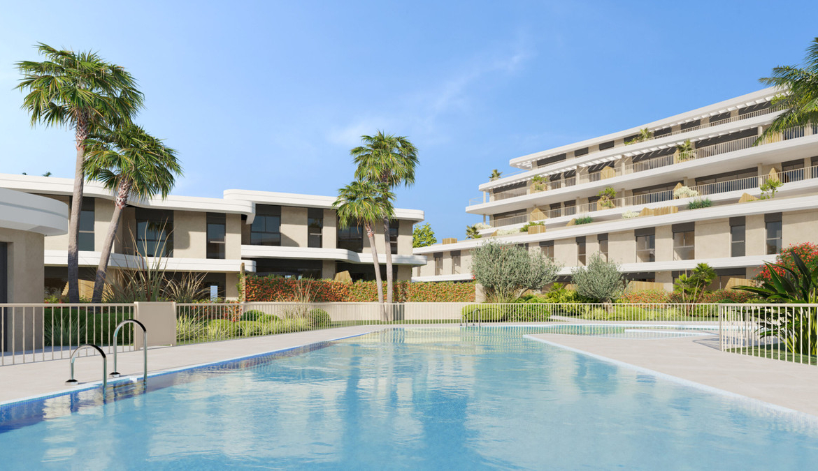 The development offers a selection of 2 and 3-bedroom properties, including duplex apartments, ground-floor homes with private gardens and large terraces, and penthouses with private solariums. Each property includes a garage and storage room, and many homes enjoy wonderful views of the Mediterranean Sea.