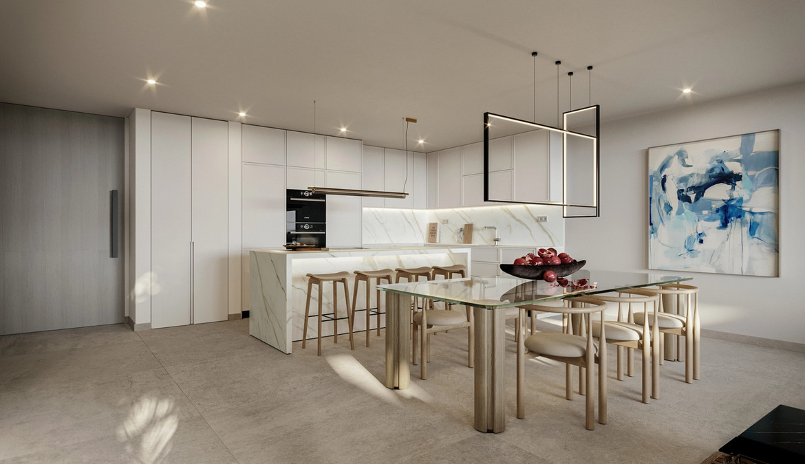 Ground-floor homes include private gardens and swimming pools, creating a peaceful outdoor environment. The top-floor apartments feature private solariums with stunning sea views and their own private pools, offering an exceptional space for relaxation and entertaining.