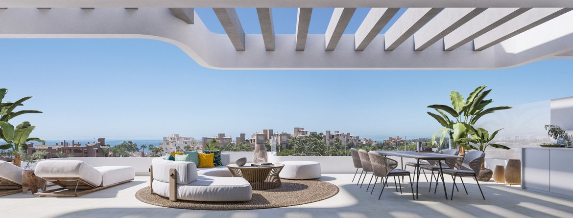 The development benefits from excellent transport connections. It is located just five minutes by car from the centre of Estepona, ten minutes from the luxury marina of Puerto Banús, and approximately twenty minutes from Marbella.