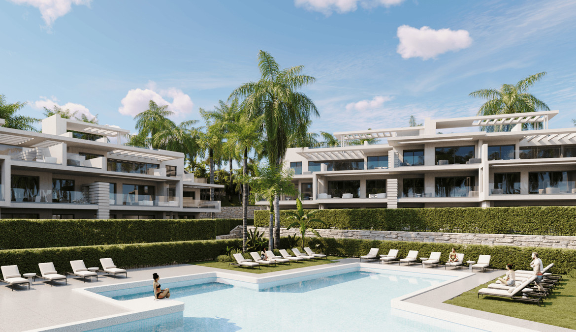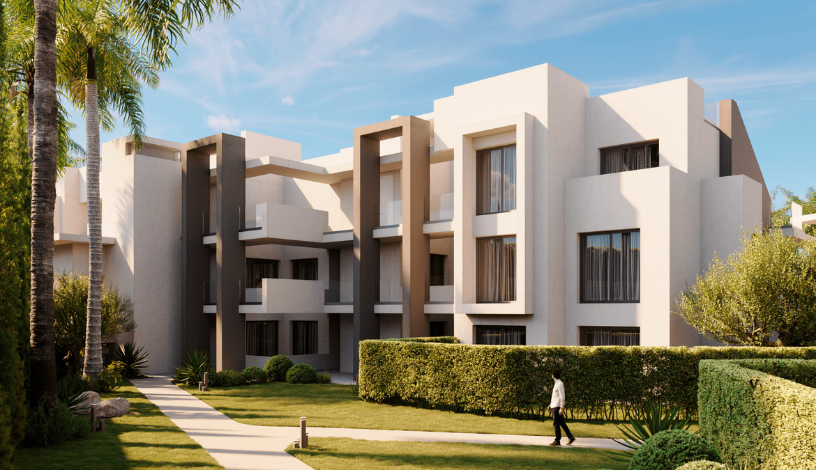 The development consists of 48 apartments distributed across three floors. Many of the homes offer attractive views of the sea, the nearby golf course, and the surrounding mountains.