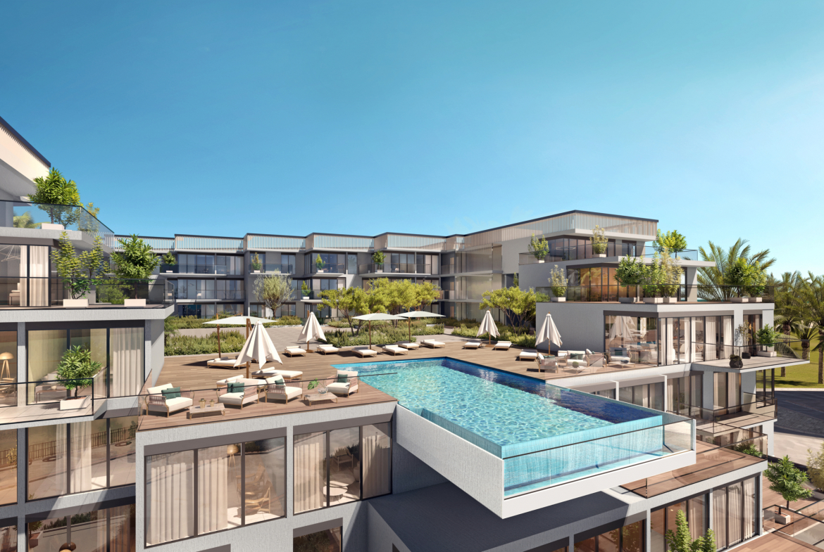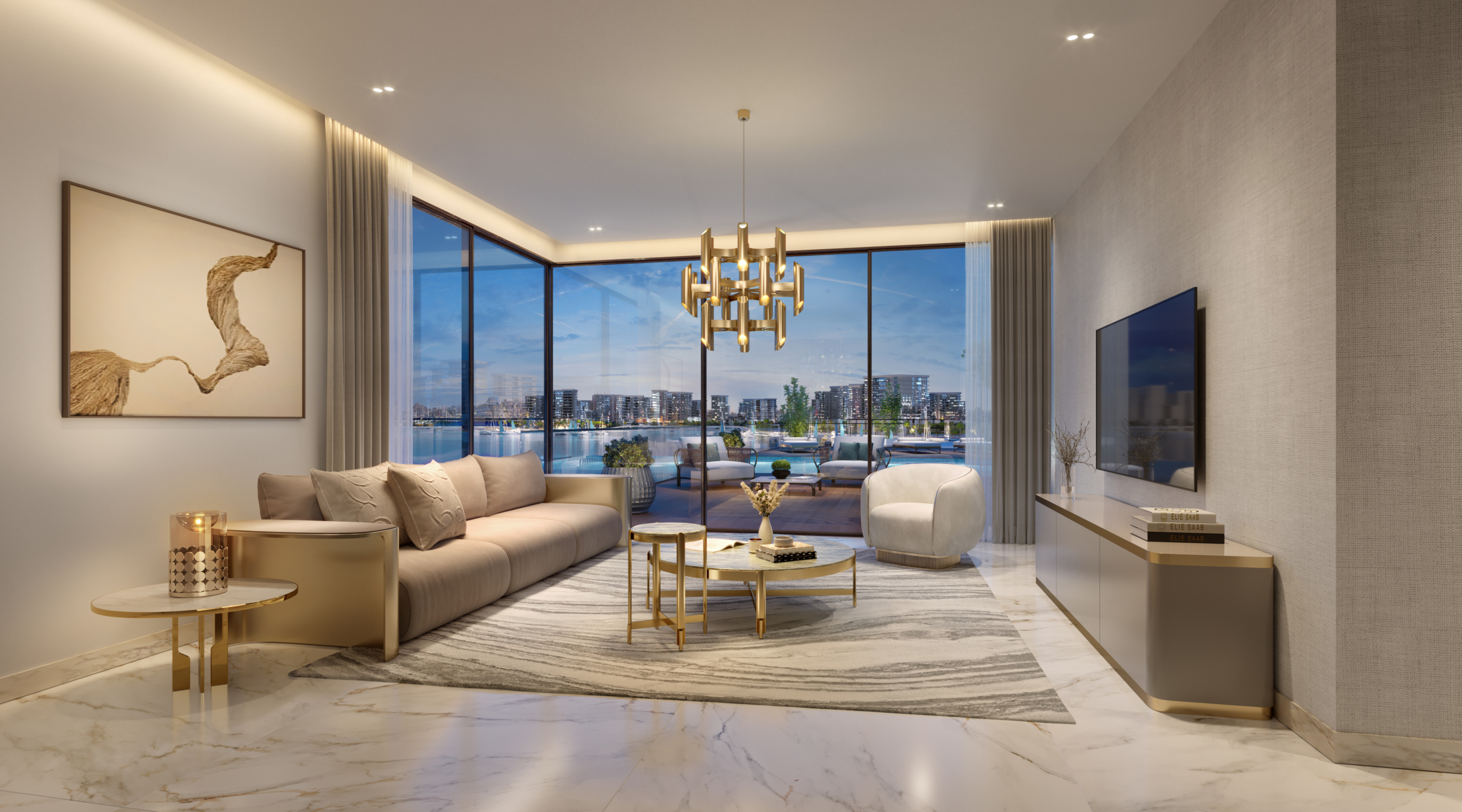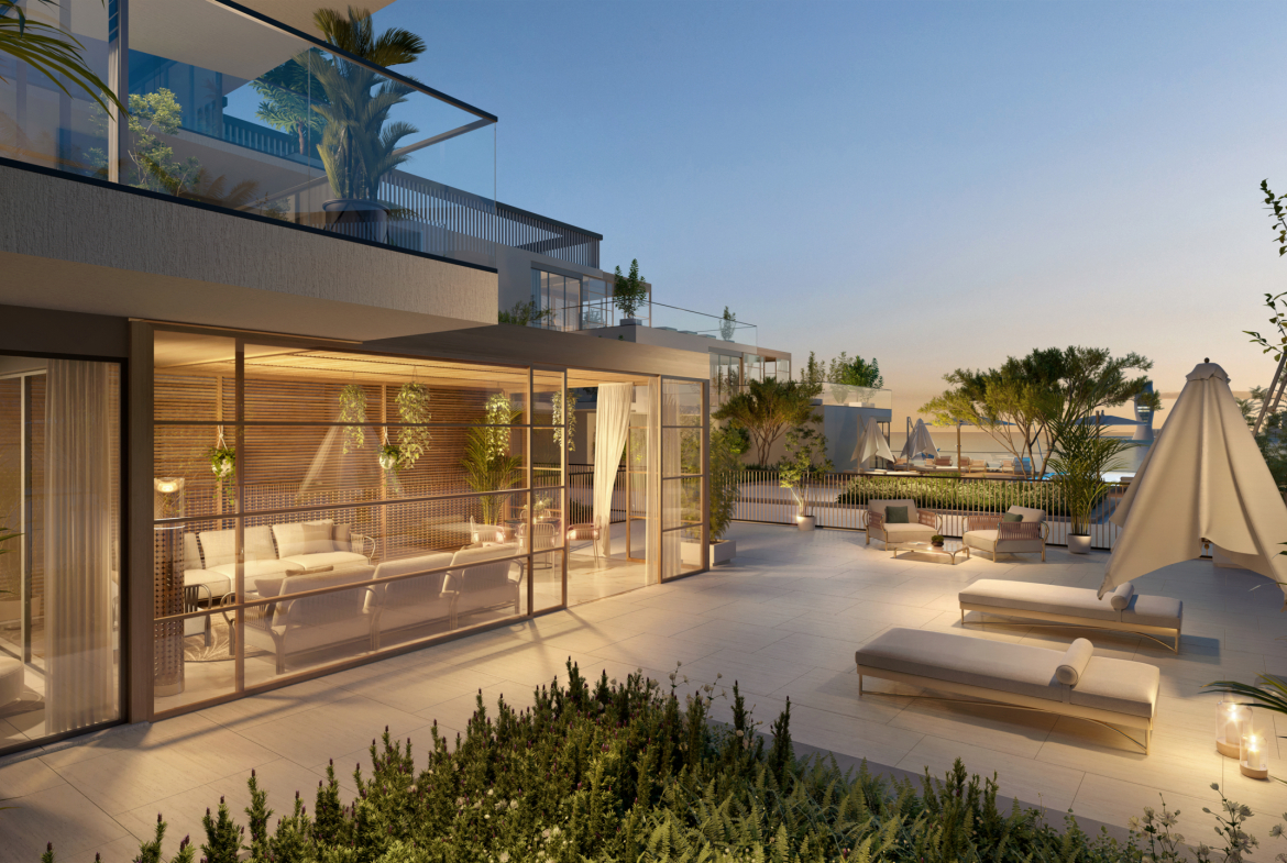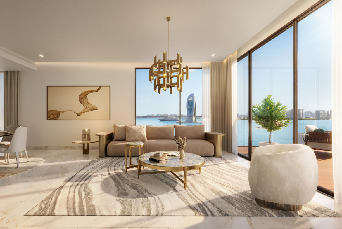 The development comprises only 59 one, two, and three-bedroom apartments. Each residence maximises space, openness, and visual flow. Expansive terraces and balconies extend the living areas outward, creating a seamless indoor–outdoor experience. Consequently, residents enjoy uninterrupted views of the Arabian Gulf and the island surroundings.