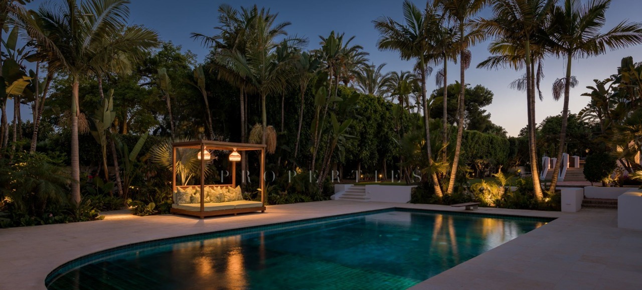 Welcome to LVone, a boutique style villa hidden away in the most desirable area of Marbella’s Golden Mile, Los Verdiales. This 8 bedroomed residence can easily accommodate large families and their staff, providing a homely retreat during those long summers in Marbella. It sleeps up to 16, with 9 bathrooms and 2 kitchens. The interior is plush, with cosy bedrooms and spacious bathrooms. The property is just 50 metres from the water with all of The Golden Mile’s amenities on its doorstep. LVone benefits from its own gym, private pool, tennis court and 24 hour security.