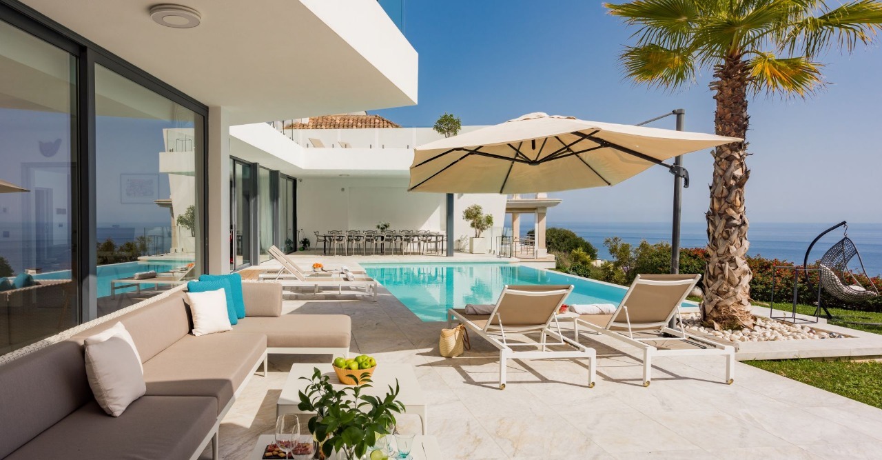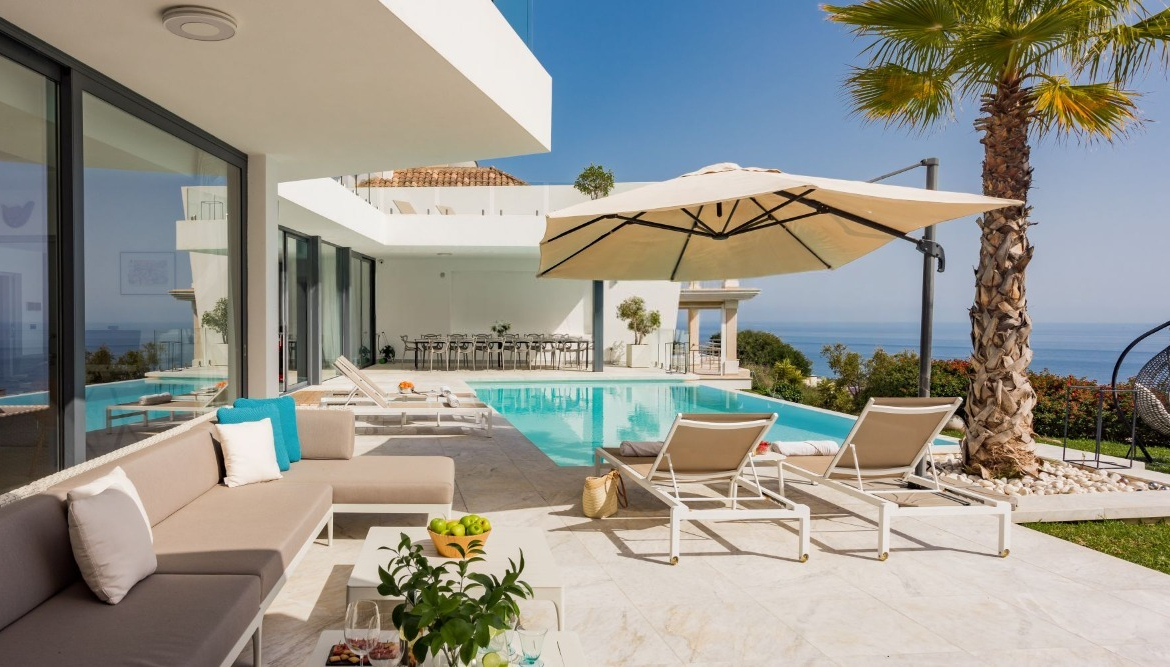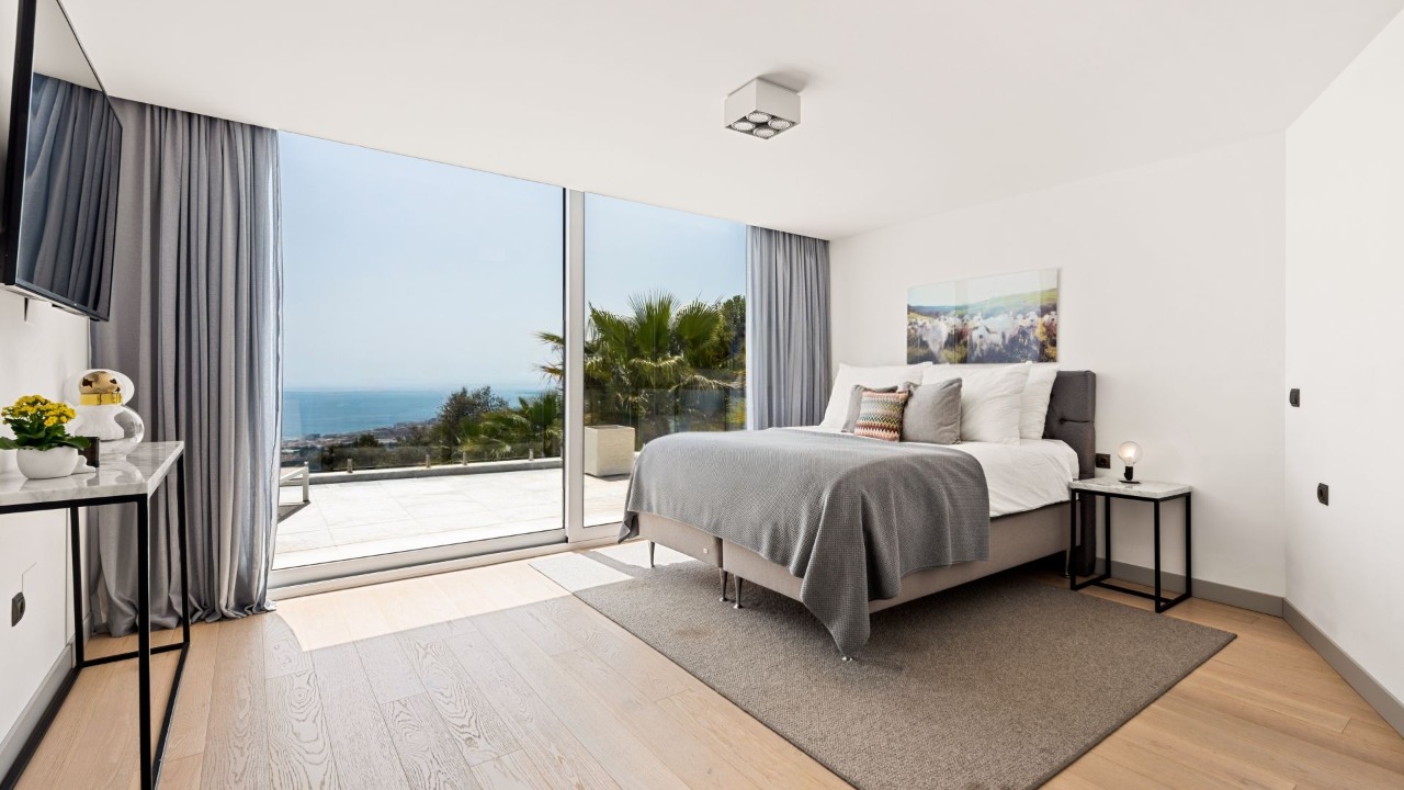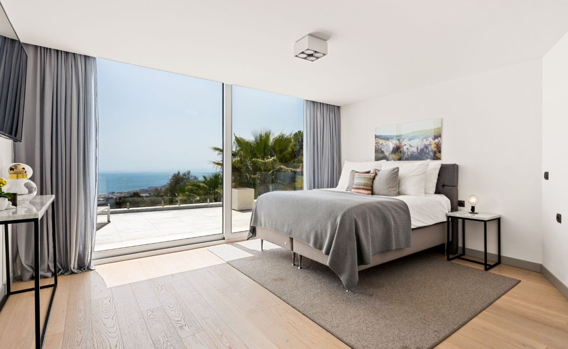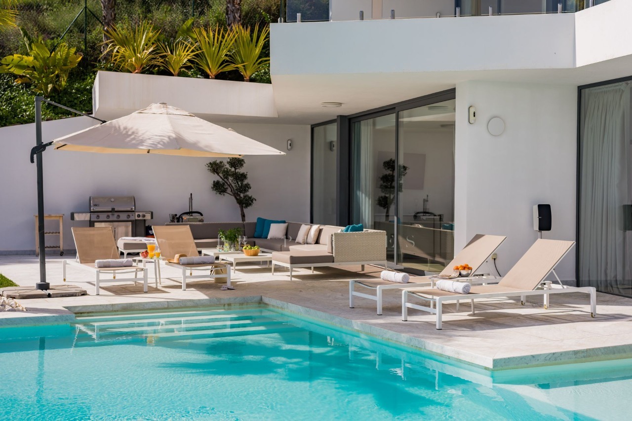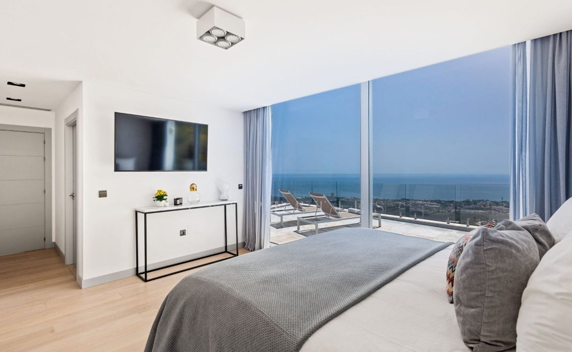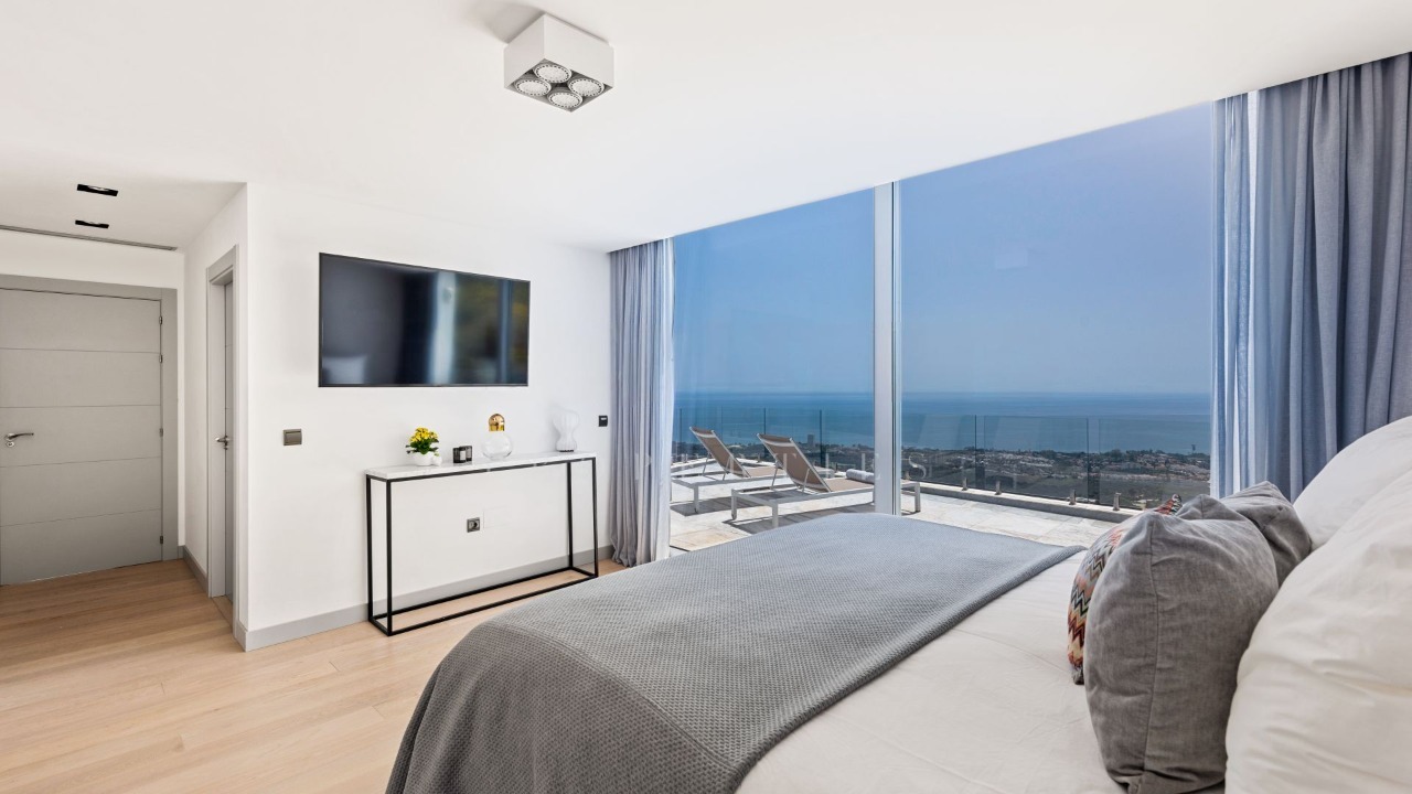 This stunning South facing holiday villa built on three levels and comprises of a spacious living room with a fireplace and 70 inch TV, dining area, fully equipped kitchen with Gaggenau appliances, guest toilet and five double bedrooms with en suite bathroom and outstanding views, all bedrooms with 180cm bed, 60 inch TV and a dressing room.