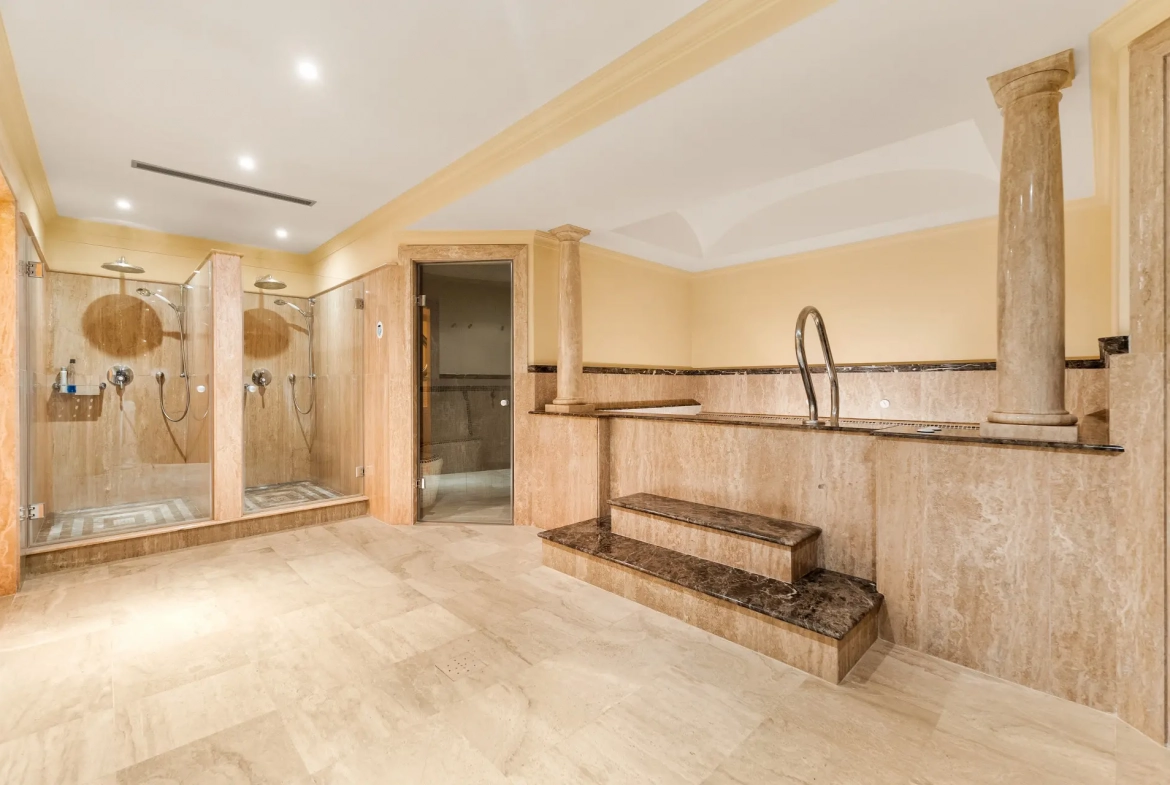 A standout feature of this property is its comprehensive wellness and leisure offering on the lower level. This includes a fully equipped gym, luxurious spa facilities with a hammam and sauna, a bespoke wine cellar, and a large laundry and service area. Whether entertaining guests, unwinding after a day at the beach, or maintaining a year-round wellness routine, every detail has been meticulously considered.