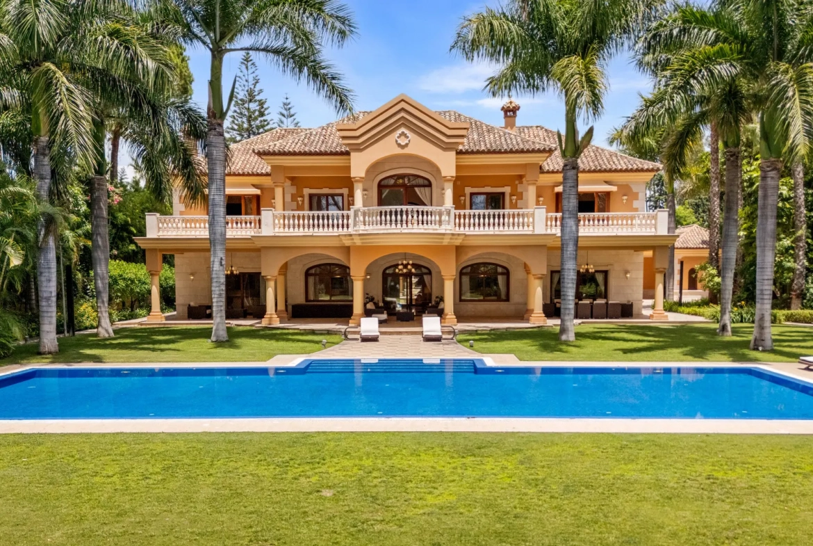 Located just 100 metres from the beach, this distinguished residence in Guadalmina Baja occupies a rare, level plot of nearly 5,000 m². Enveloped by mature landscaping, the property offers complete privacy and security within a prestigious gated community with 24-hour surveillance, creating a true sanctuary in one of the Costa del Sol’s most sought-after neighbourhoods.