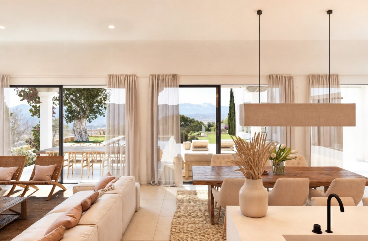 The location offers a truly exceptional setting. To the south, the villa enjoys panoramic views of the valley and surrounding mountains. Meanwhile, the impressive rock faces of the Montgó create a spectacular natural backdrop to the north.