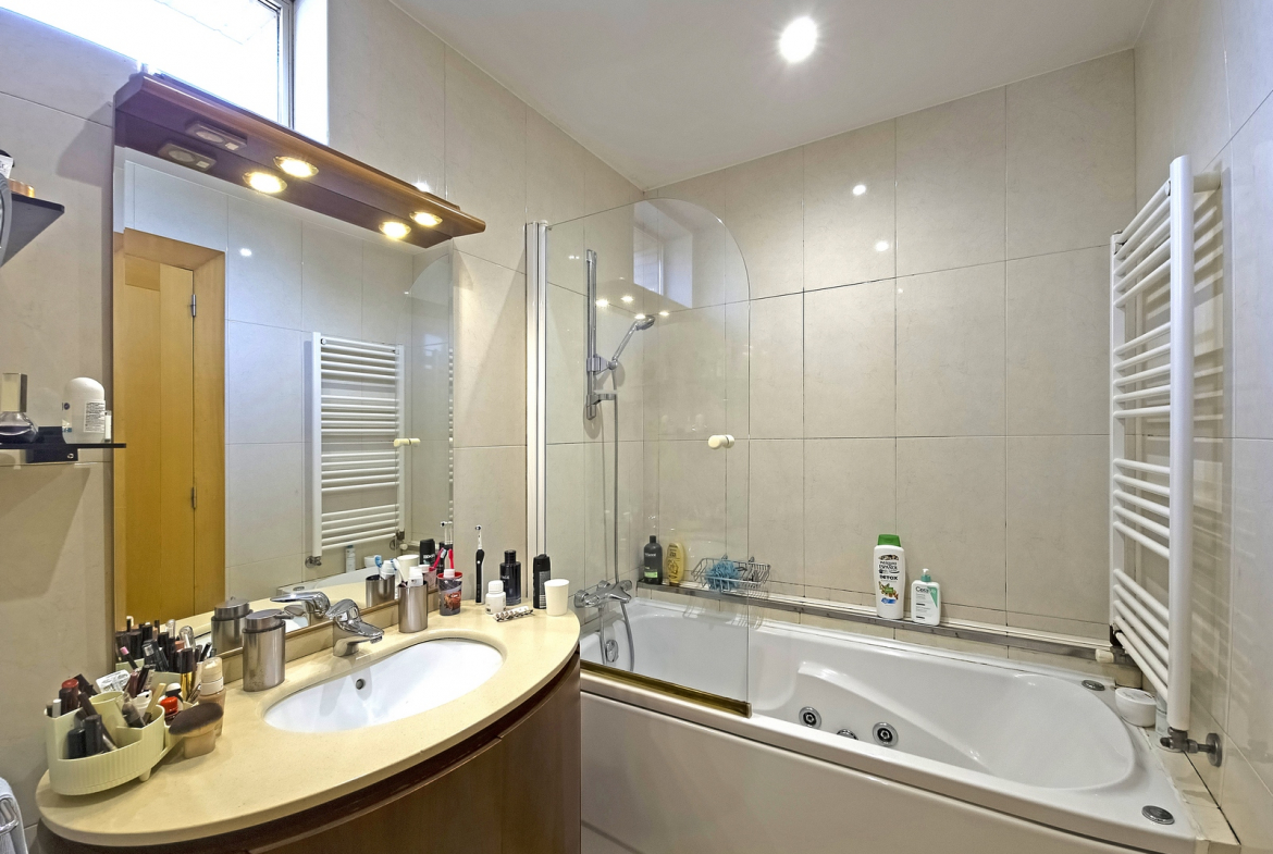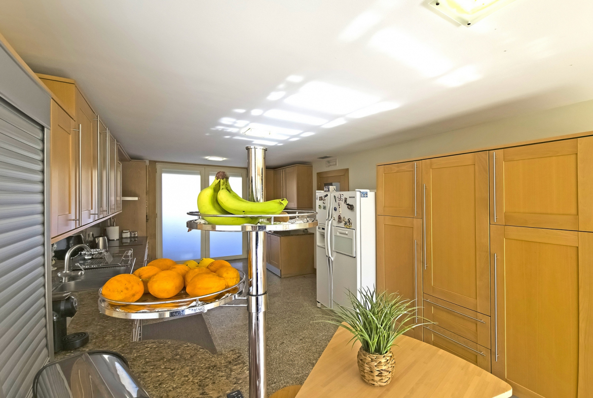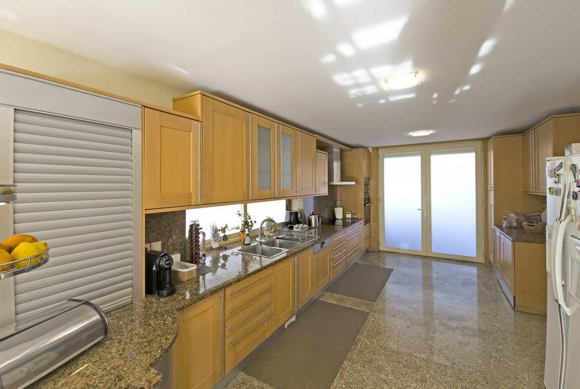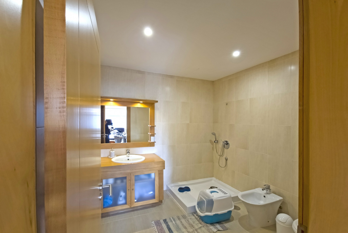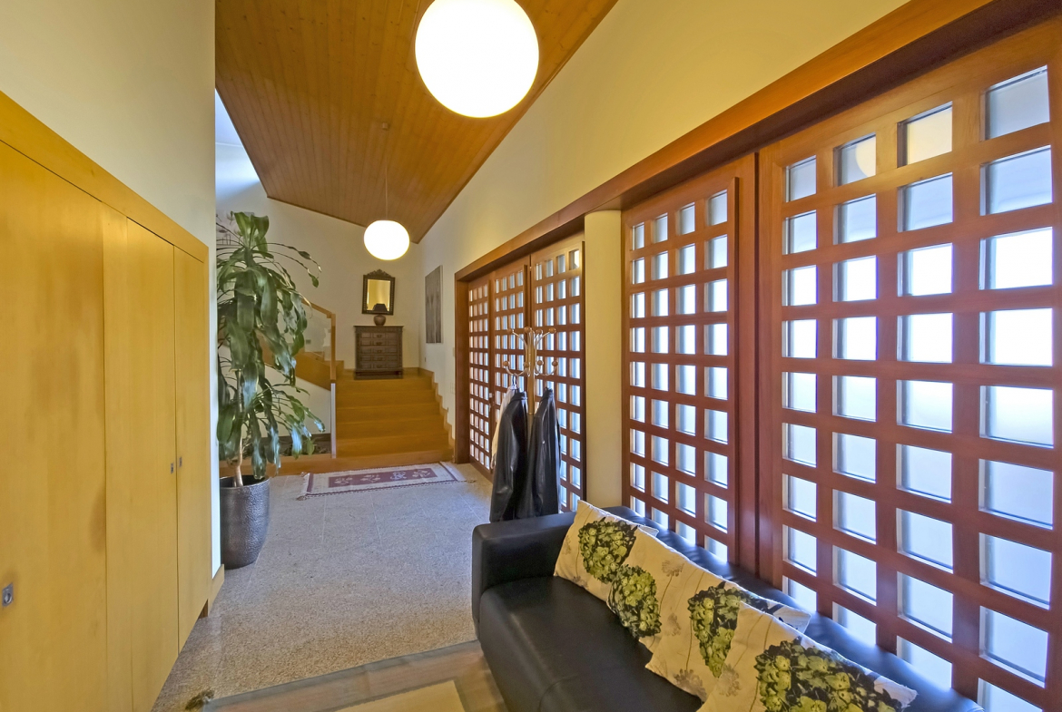 The villa also includes a closed private garage, providing secure parking and storage. Outside, a beautifully maintained surrounding garden enhances the home’s sense of tranquility and privacy. In addition, the outdoor space introduces a natural element that perfectly complements the interior comfort.