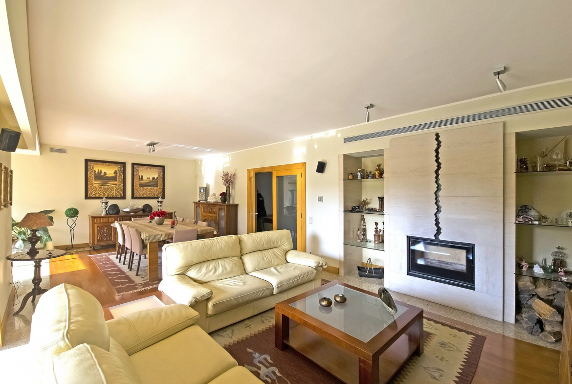 The property benefits from a comprehensive air-conditioning system installed throughout all divisions. Consequently, residents enjoy year-round thermal comfort. Furthermore, the living room includes a heat recovery fireplace, which adds both efficiency and a cozy atmosphere during cooler months.