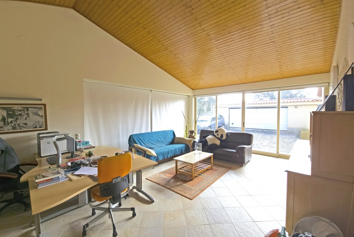 Large glazed surfaces flood the south-facing rooms with natural light. Consequently, the interior feels bright, warm, and welcoming throughout the day. This thoughtful design significantly enhances the overall living experience.
