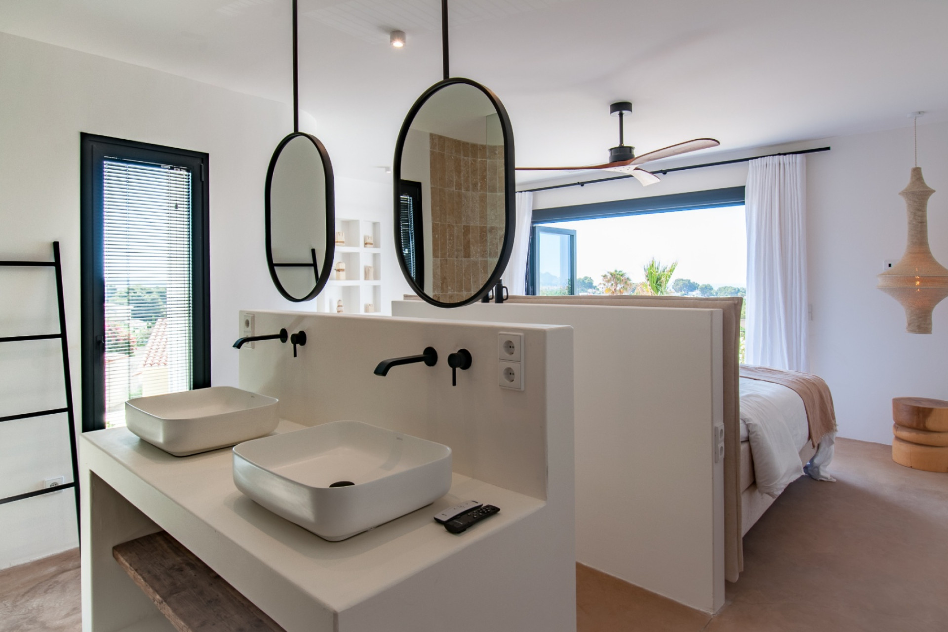 This exclusive Ibiza-style villa is located in the prestigious San Jaime area of Benissa. The property enjoys a privileged position with panoramic views of the Mediterranean Sea. As a result, the villa offers a perfect balance between luxury, comfort, and tranquility.