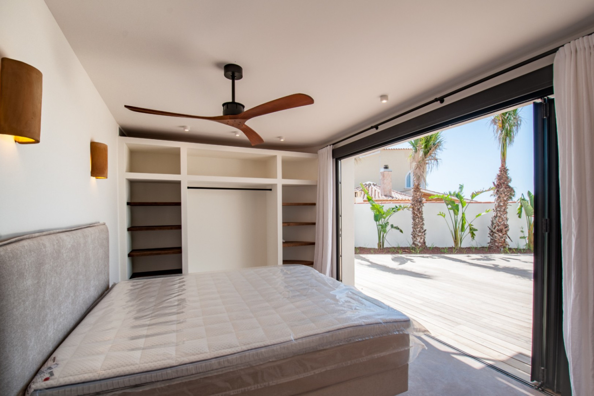 Large windows allow natural light to fill the interior while connecting the living spaces with the outdoor terraces. Consequently, the villa creates a seamless transition between indoor comfort and Mediterranean outdoor living.