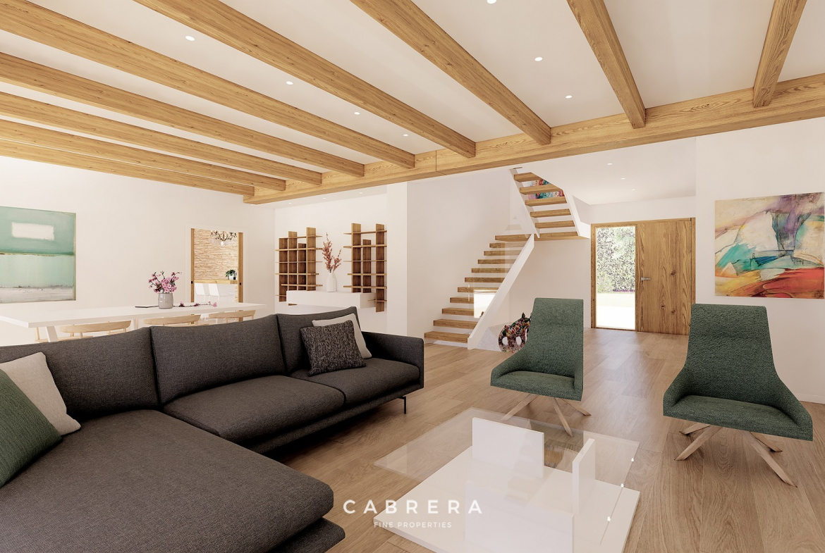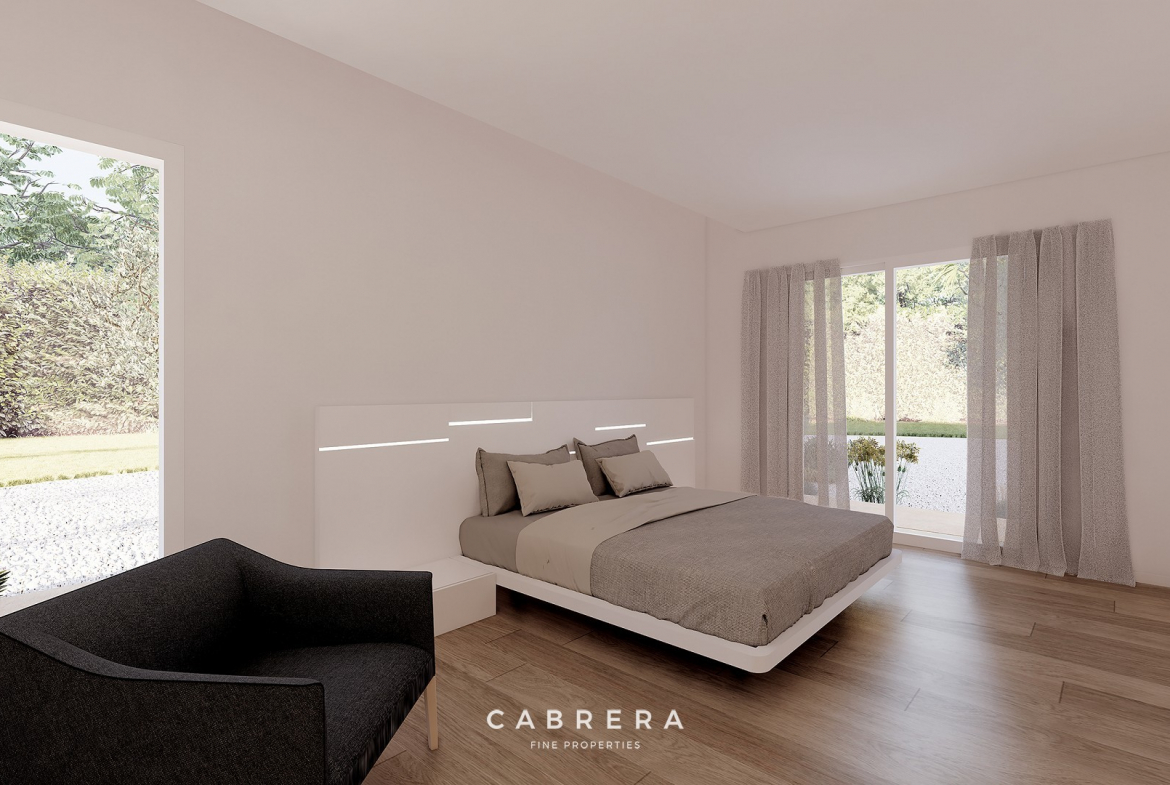 From every room, you will be able to enjoy panoramic views of the inland area and the impressive Sierra de Bernia mountain range. The entire plot will be landscaped with native plants such as palm trees, olive trees, vineyards, orange groves, etc., so that you will be surrounded by an oasis of nature and tranquillity. The villa is spread over two floors and will be built in a Mediterranean style with rustic and modern elements to create a warm atmosphere.