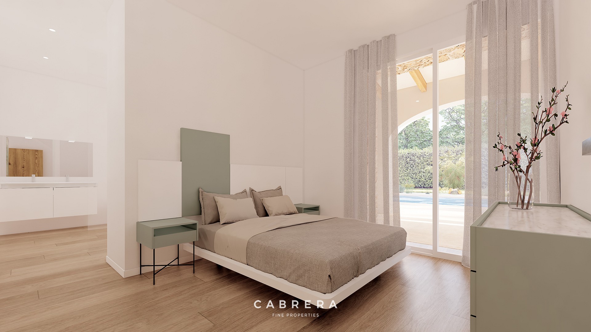 You enter the villa into a spacious hall that opens onto an open-plan living-dining room, adjacent to which is a kitchen with windows on both sides, allowing plenty of natural light to flood in. There is also a storage room and a laundry room. On the other side of the villa are two spacious double bedrooms, each with an en-suite bathroom and built-in wardrobes. In addition, there is a very large covered terrace, directly accessible from the living room and kitchen, ideal for lunching outside in the cool of the summer.