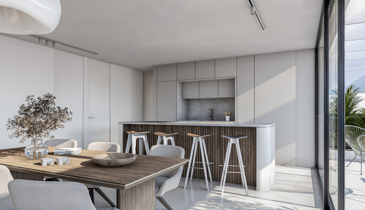 Each home features large terraces where residents can enjoy the surrounding scenery and the pleasant climate of the Costa del Sol.