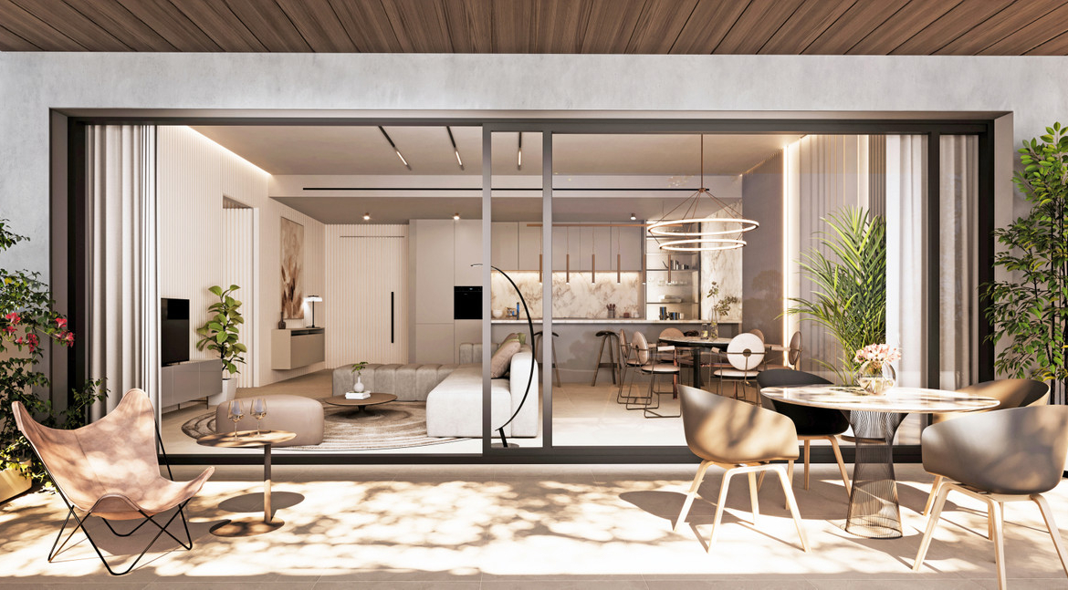 The development offers a selection of elegant two, three, and four-bedroom apartments and penthouses designed with contemporary architecture and high-quality materials. The homes feature spacious interiors of up to 195 m², complemented by impressive terraces of up to 189 m².
