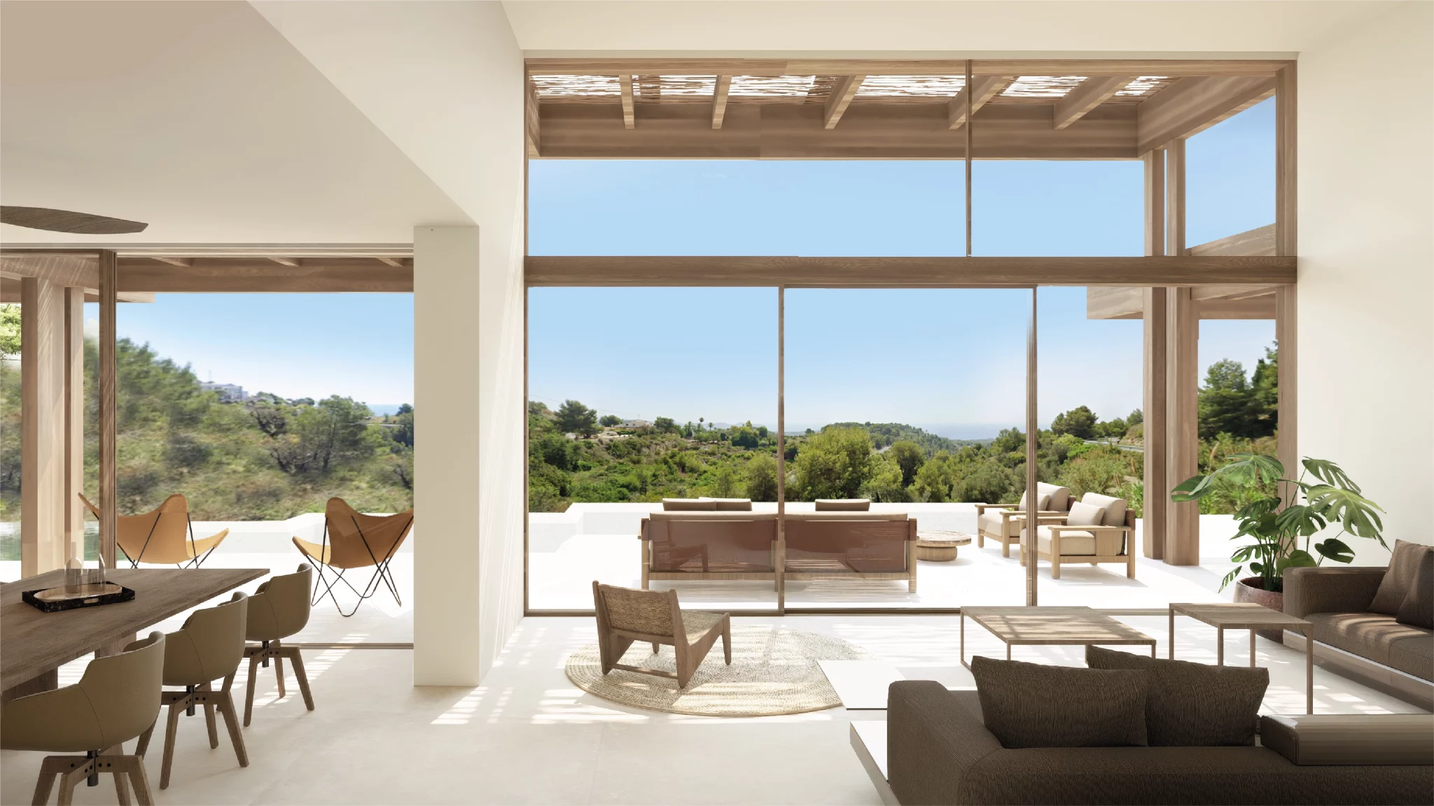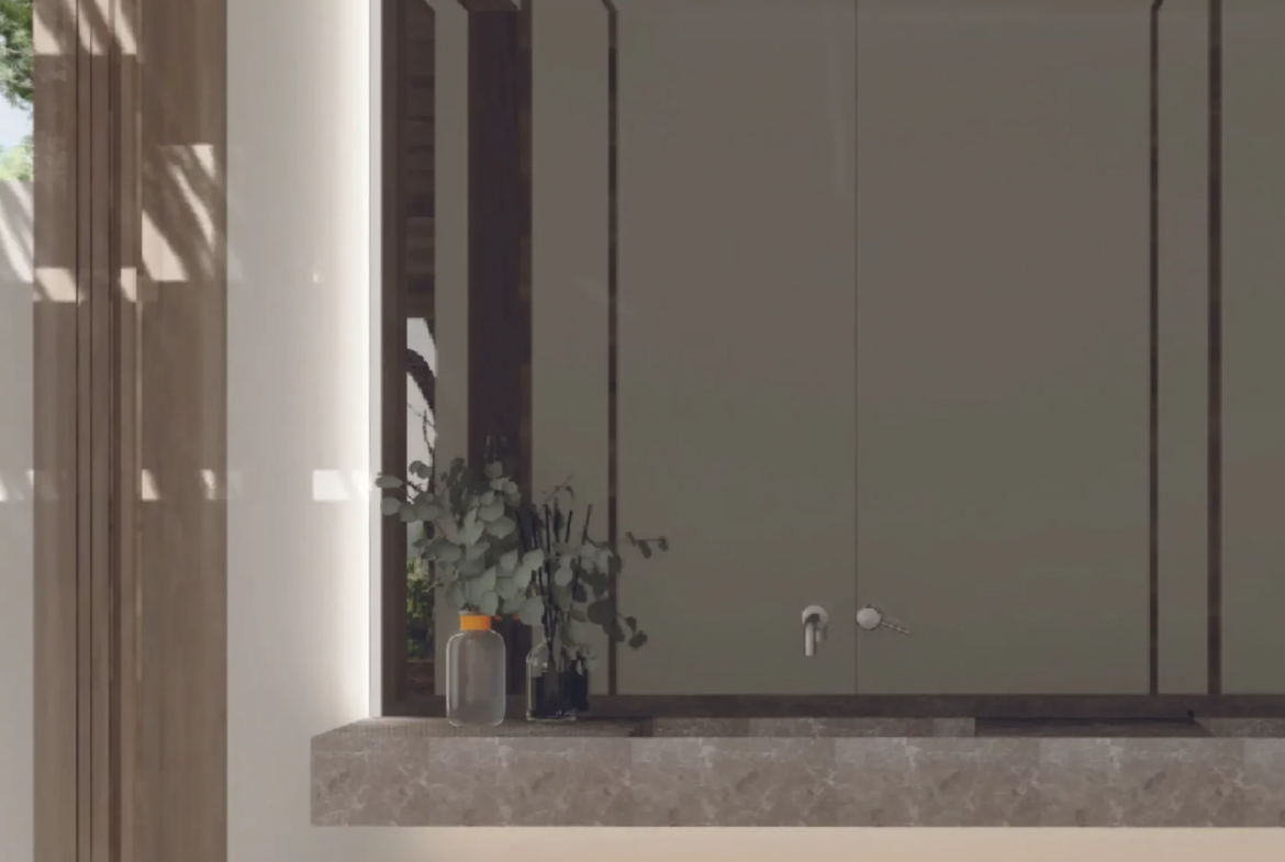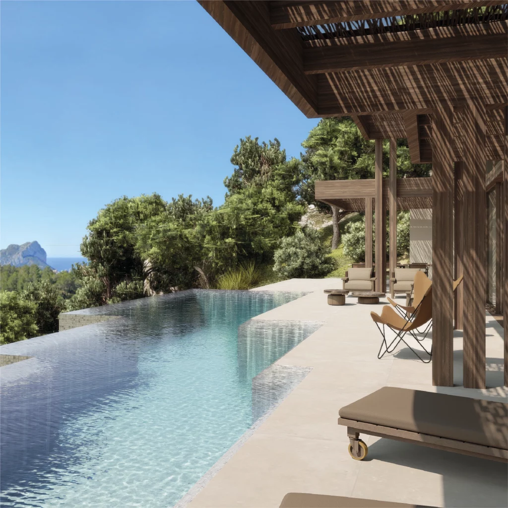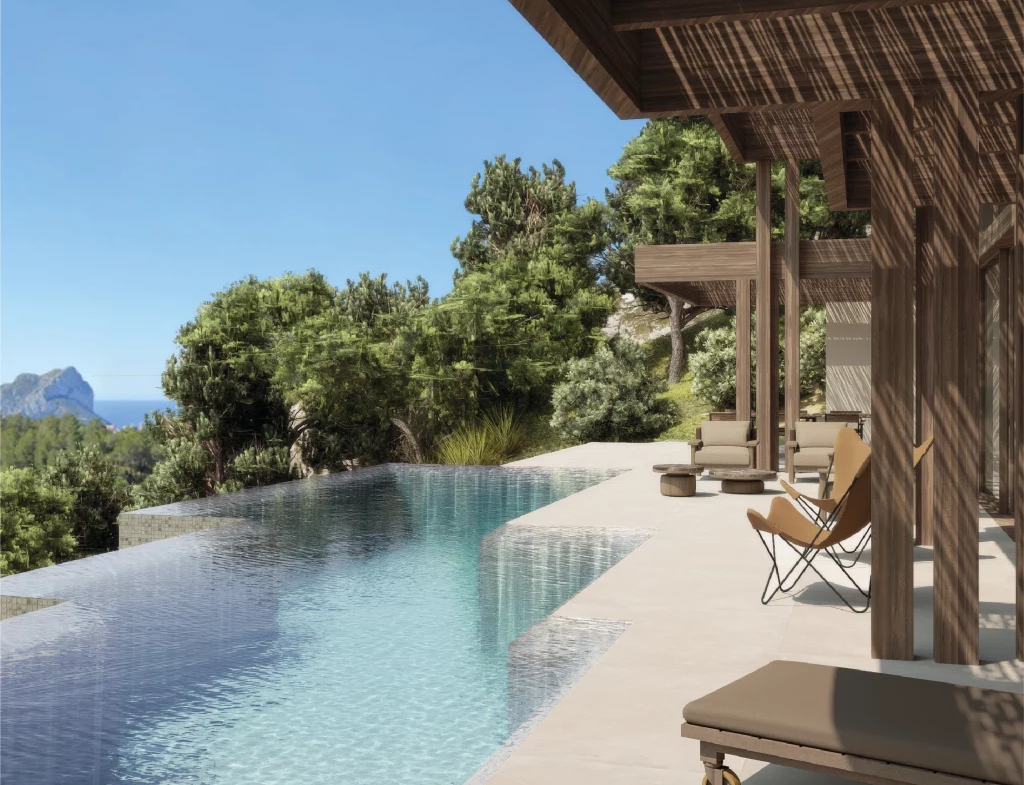 The villa includes generous terraces designed for outdoor living. Covered porches provide shade and comfort throughout the year.