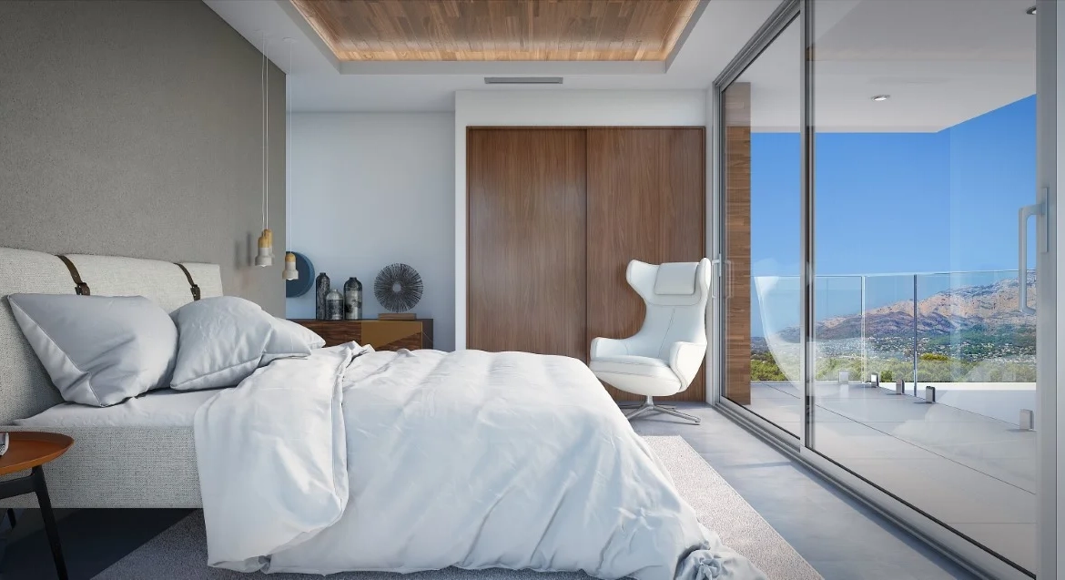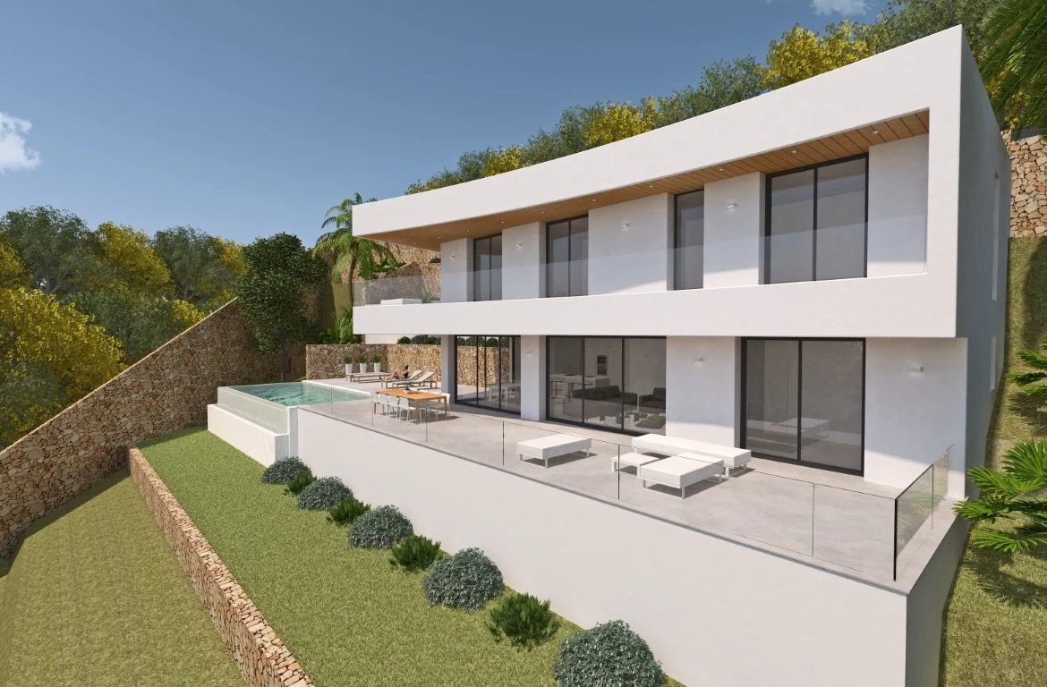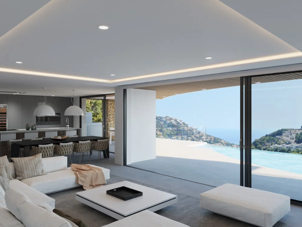 This newly built villa in Jávea enjoys beautiful sea views and a south-facing orientation. The property is located in a quiet residential area, offering both privacy and a peaceful Mediterranean environment.